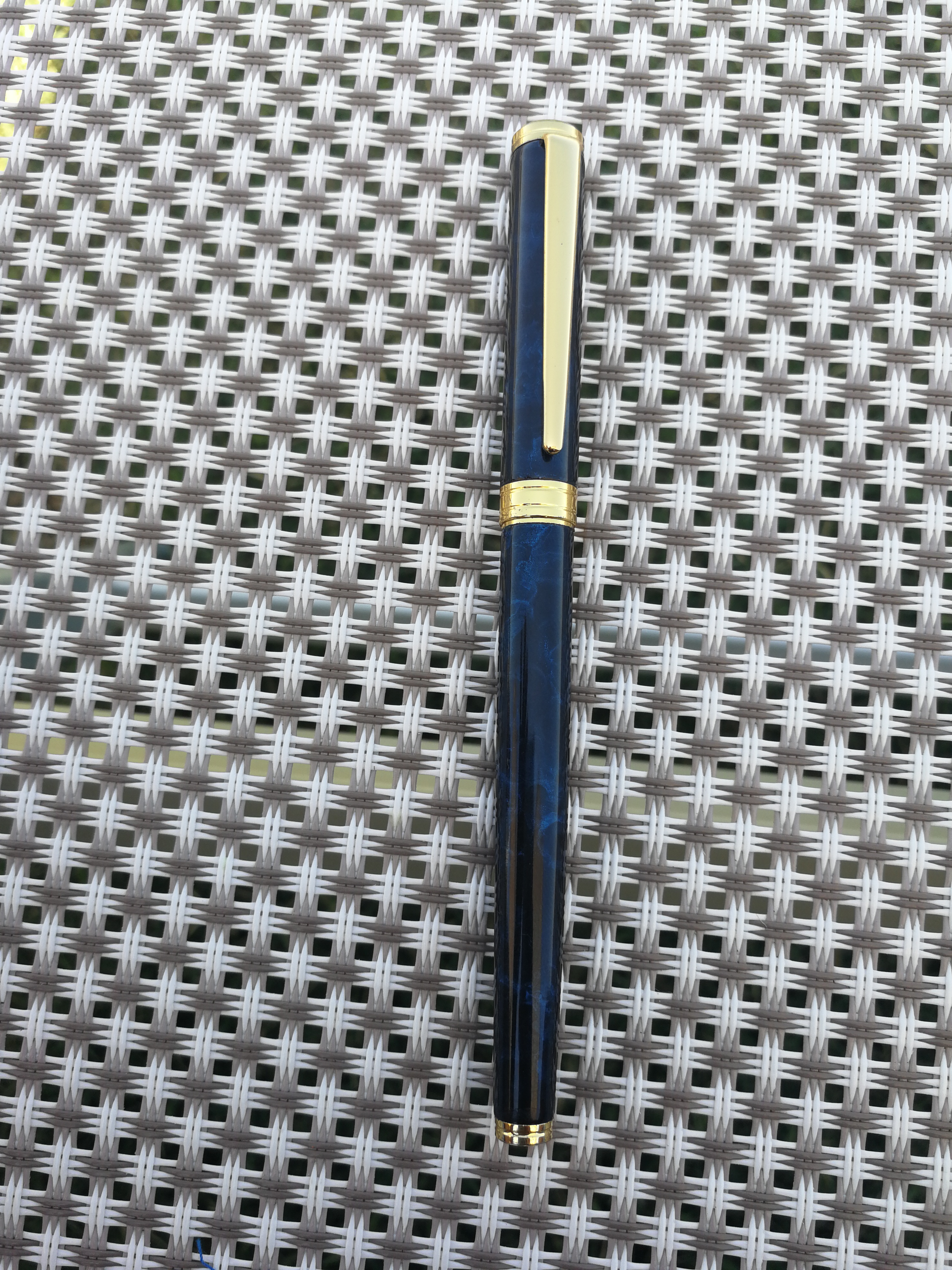 È la mia filosofia. Al momento l'ho caricata con inchiostro grigio permanente Montblanc (LE) e direi se la cava benone. I riflessi marmorei del blu ed il pennino a doppio colore sono una chicca. La porto in giro con Jinhao X750 caricata a inchiostro herbin Bleu Parvenche. Provate a prendere ordinazioni a memoria al momento del caffè di un tavolo di 15 parenti. Qualcuno se la ride per il mio. Stile retrò al mare qualcun altro si conserva il foglio. Le stilografiche vanno anche al mare quando sono in metallo e nel giusto contenitore. Porto un pezzo di puro piacere sempre con me.