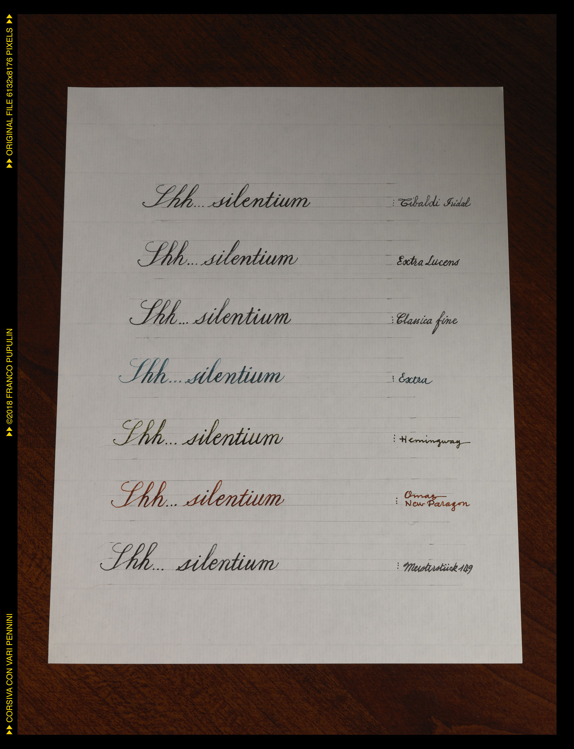 Certo, il vero pennino flessibile rende le cose più semplici e i risultati sono migliori. Ho provato alcuni pennini cosiddetti “flessibili” moderni, e ne possiedo uno montato su una penna Stipula, ma mi sembra di poter dire che questi pennini sono morbidi piuttosto che flessibili. Al contrario, descriverei invece un vero flessibile come un pennino rigido ed elastico, che oppone una minima resistenza alla pressione ma ritorna prontamente alla sua condizione “di riposo”. In nessun modo lo definirei morbido.