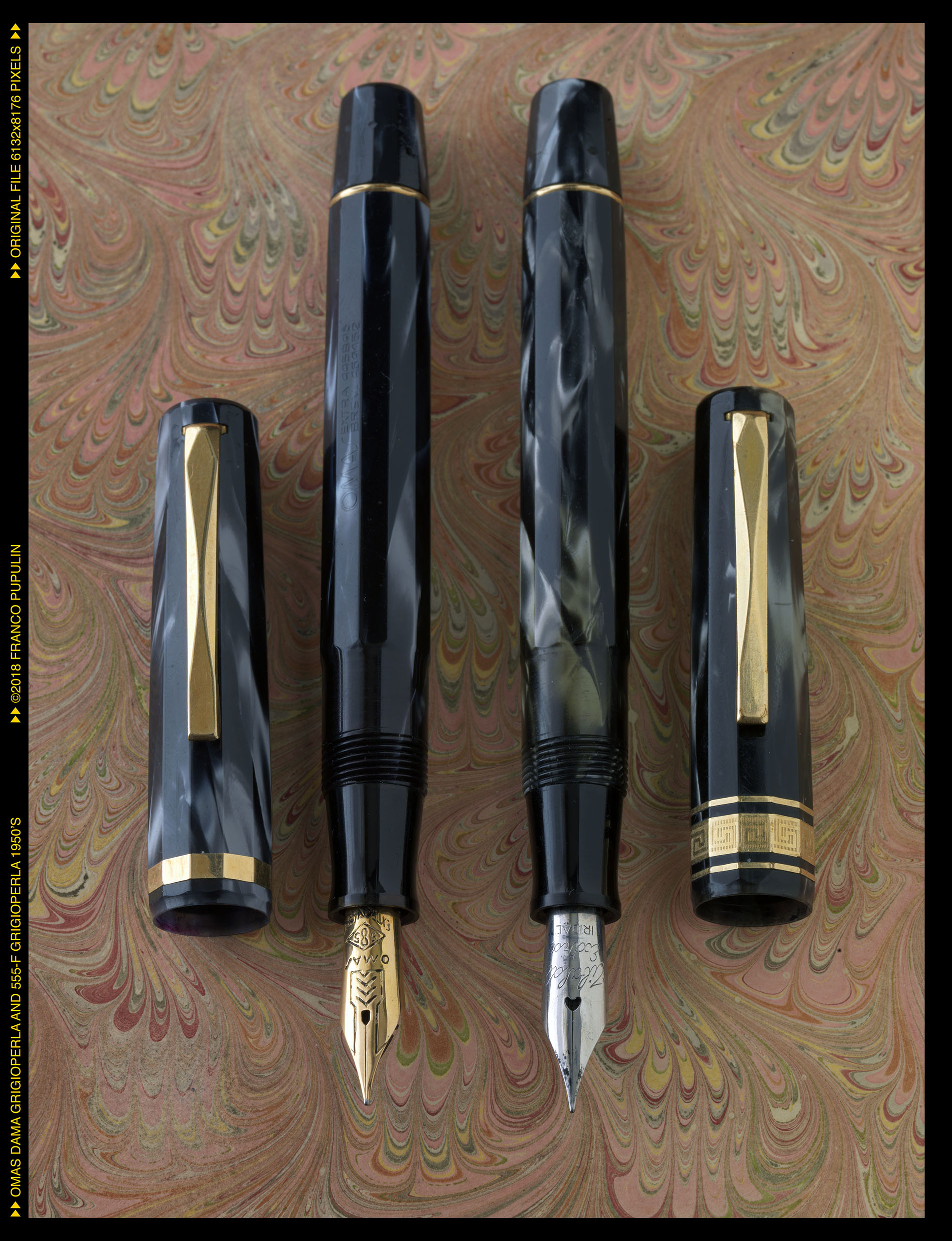 Omas Dama grigioperla and 555-F grigioperla 1950s.jpg