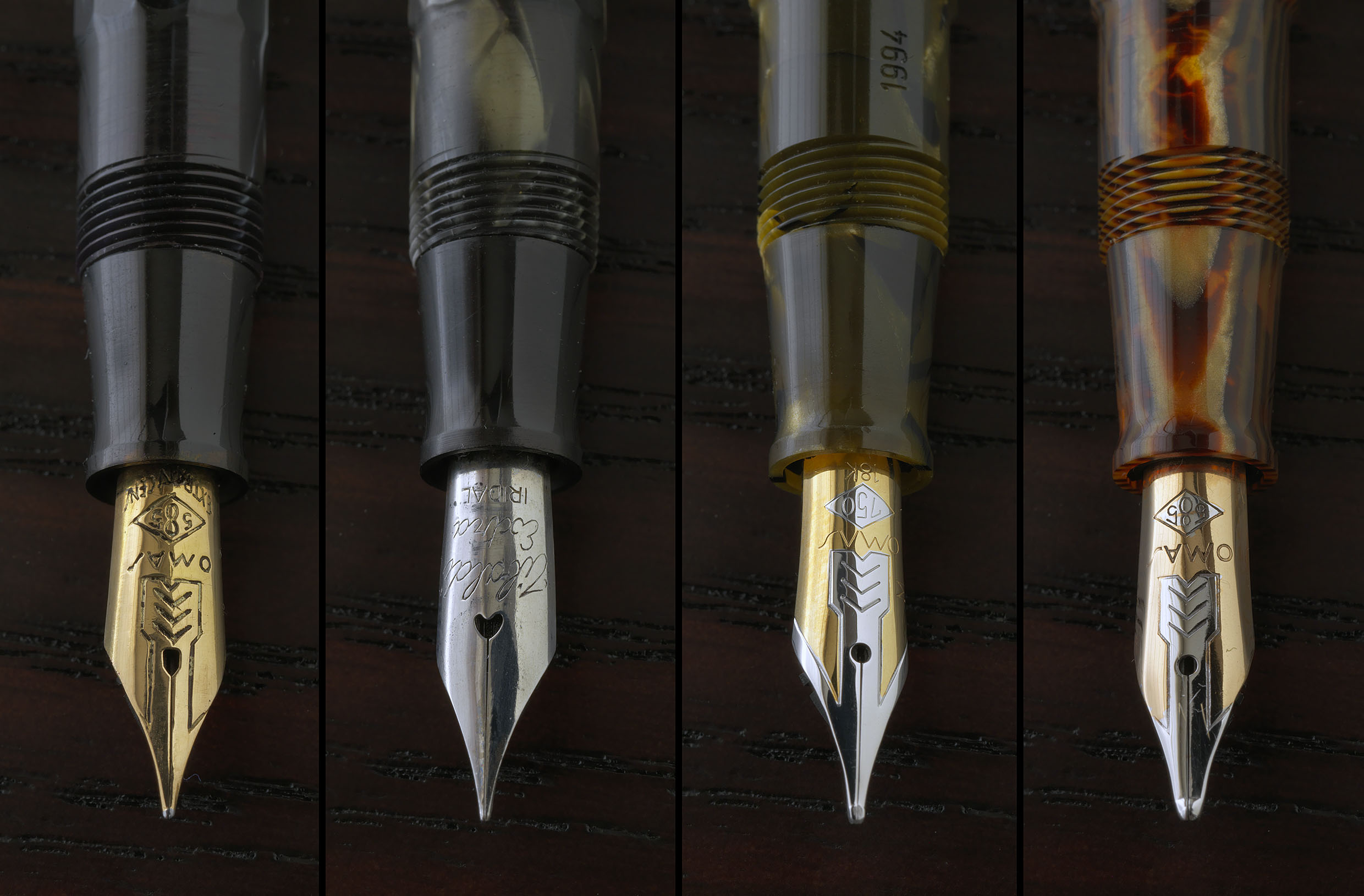 La maggior parte delle mie Omas sono moderne (dagli anni '90 in avanti) e, senza eccezione, hanno pennini con appena un po' di elasticità. Ne ho alcuni fatti da Omas e altri fatti da Bock. Hanno una rigidità diversa, ma sono entrambi rigidi. Non lo dico come una critica, perché dal mio punto di vista ogni pennino ha un'anima adatta a un certo uso e non ad altri. Ma i pennini Omas moderni sono certamente rigidi.