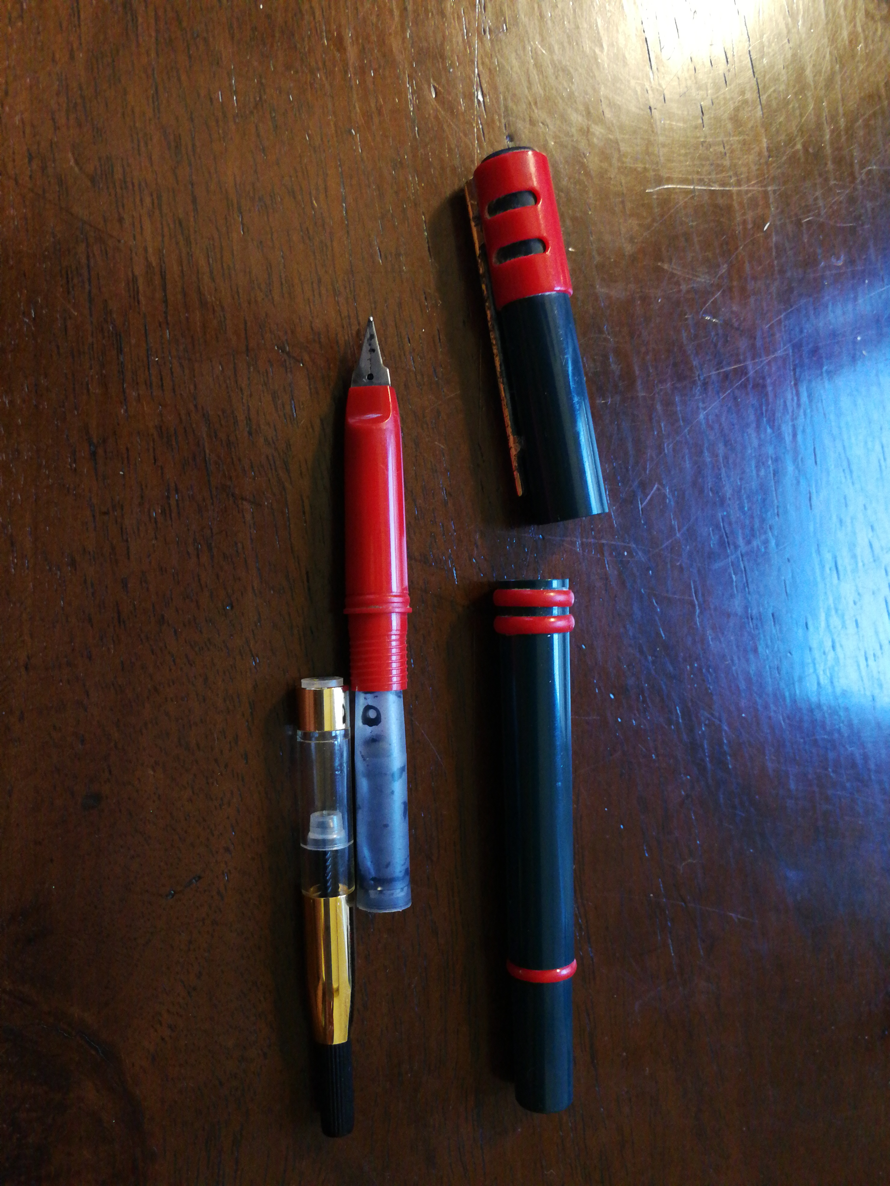 La cartuccia è proprietaria Auretta (le fanno di nuovo il mio venditore di fiducia ne ha una bella scorta). Volevo però dare a mio padre la possibilità di ricaricare altri inchiostri iroshizuko che gli ho preso senza dover usare una siringa. L'attacco è lo stesso ma devo trovare un modo per svitare il cilindro dorato, ammesso che ci sia a costo di rovinare un po' il Converter.