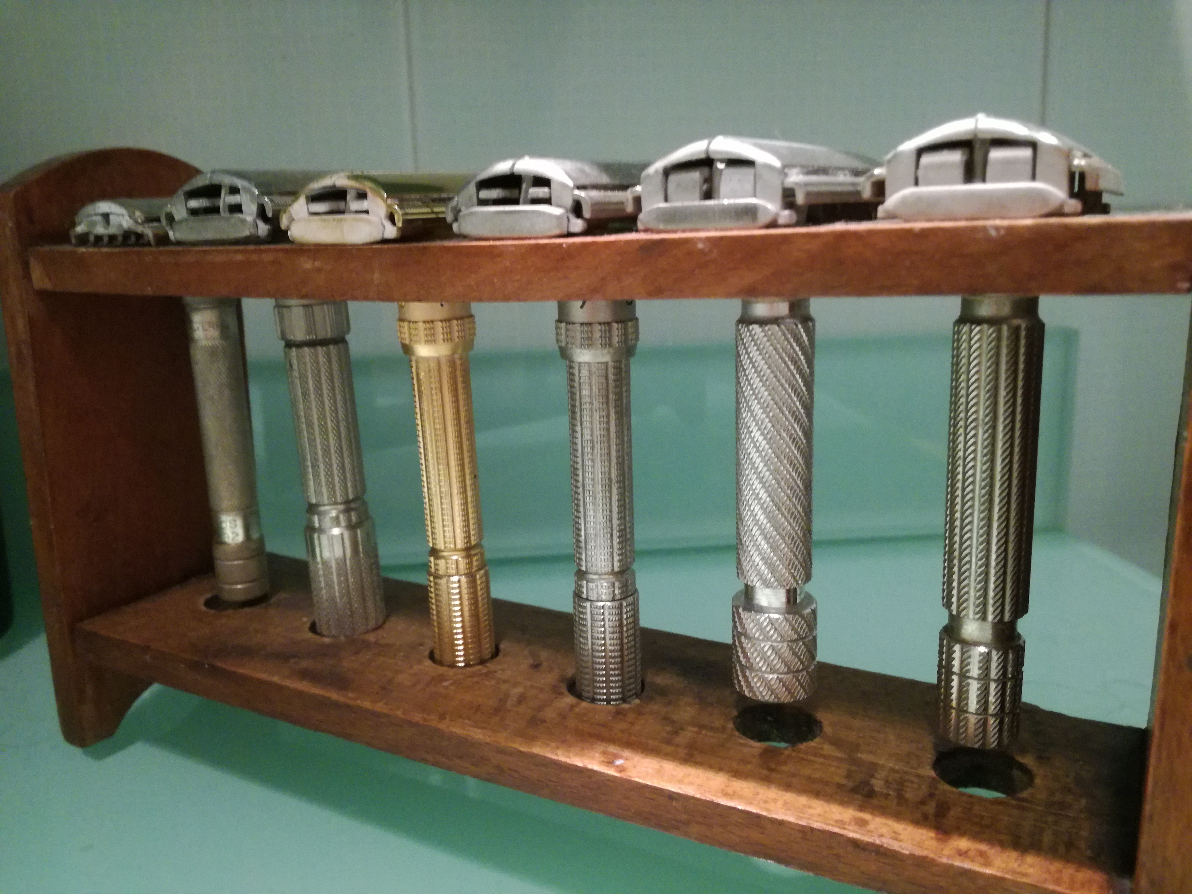 Come forse qualcun altro qui nel forum, ho l'abitudine (passione?) della rasatura tradizionale, quella con il pennello, il sapone ed il vecchio rasoio con la lametta tutta in metallo, a doppio filo o filo singolo. Ho.una discreta raccolta di circa 60-70 rasoi a lametta, per la maggior parte Gillette ma anche Schick, Gem e altri, che vanno da prima del 1920 ai meravigliosi regolabili Gillette degli anni 50-60 fino agli ultimi degli anni '80, oltre a qualche contemporaneo.