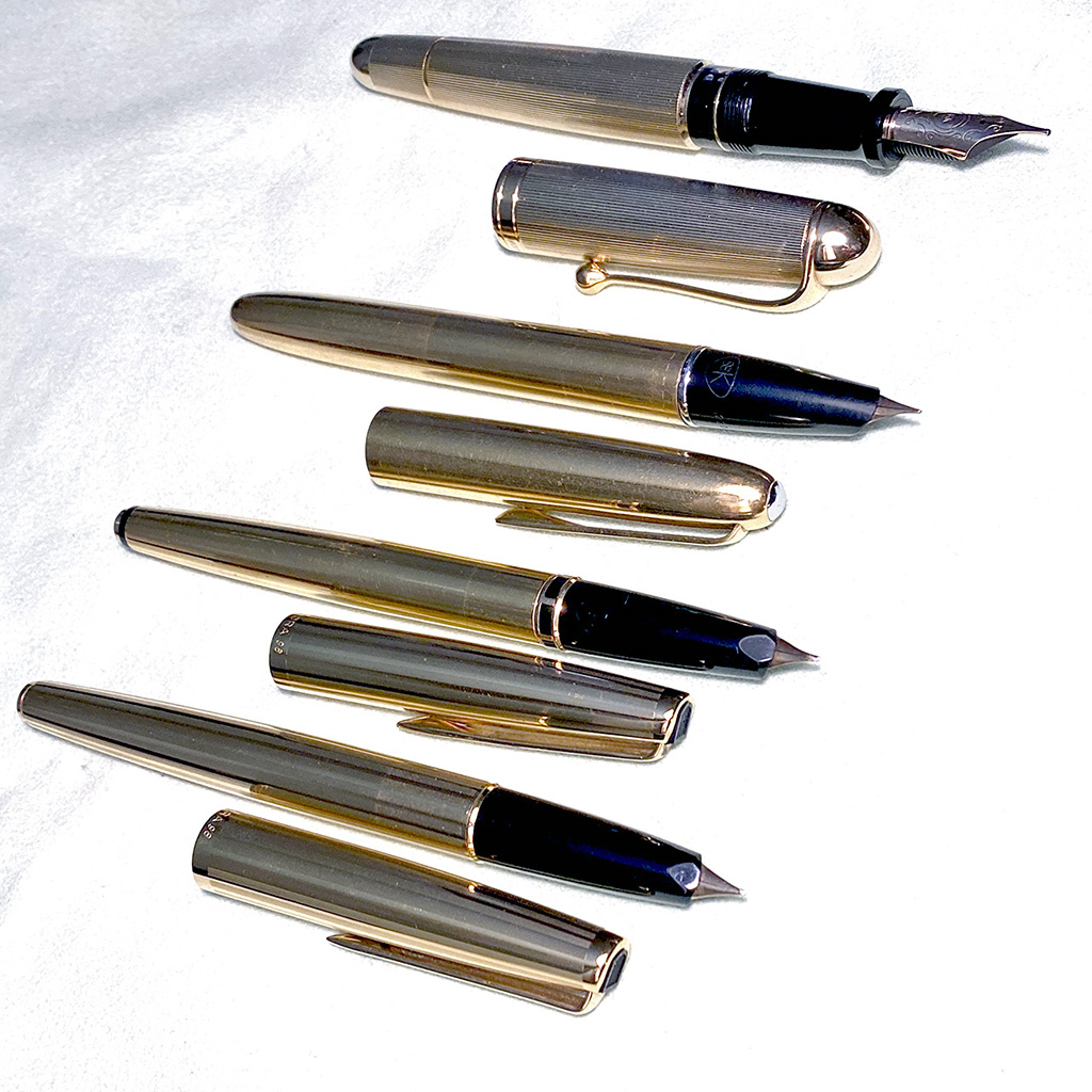 Nel frattempo, dato che da bambino avevo la mania delle penne, ho aggiornato la raccolta ed oggi, a fianco della Hastil Vermeil dei diciotto anni, un tris di Aurora 88 (due stilo e una biro), una coppia di Meisterstuck LeGrand (roller e biro, però), sono arrivate una mezza dozzina di TWSBI, una Optima Auroloide, una Lamy 2000 e una M805 Stresemann.