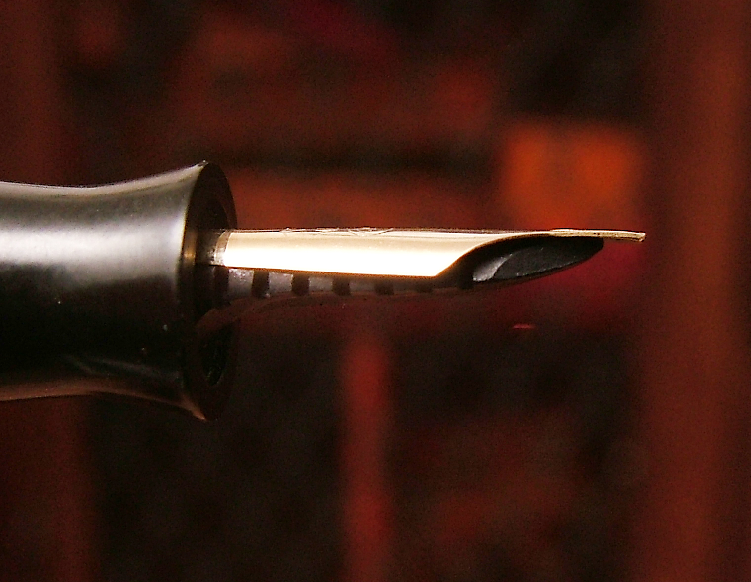 Poiché i guai non vengono mai da soli, la penna senza cappuccio rotola e come da legge di Murphy cade con la punta, una semplice ammaccatura del pennino in oro sarebbe riparabile, ma no, oltre ad ammaccarsi saltano le punte di iridio.