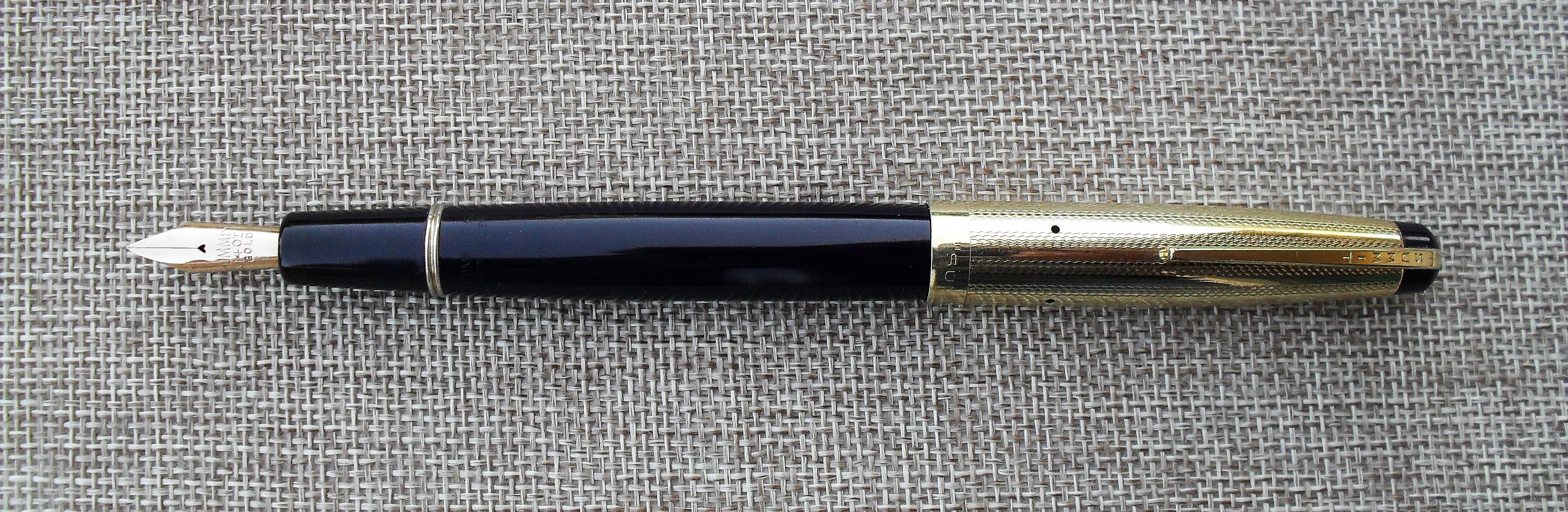 Senza dubbio bella, grazie anche alla lavorazione del cappuccio laminato in oro, alle proporzioni ed alle forme, questa penna si rivela esteticamente ancora molto attuale, grazie anche alla sua eleganza, misurata ma non modesta, specialmente nella versione blu notte, come quella che vedete.