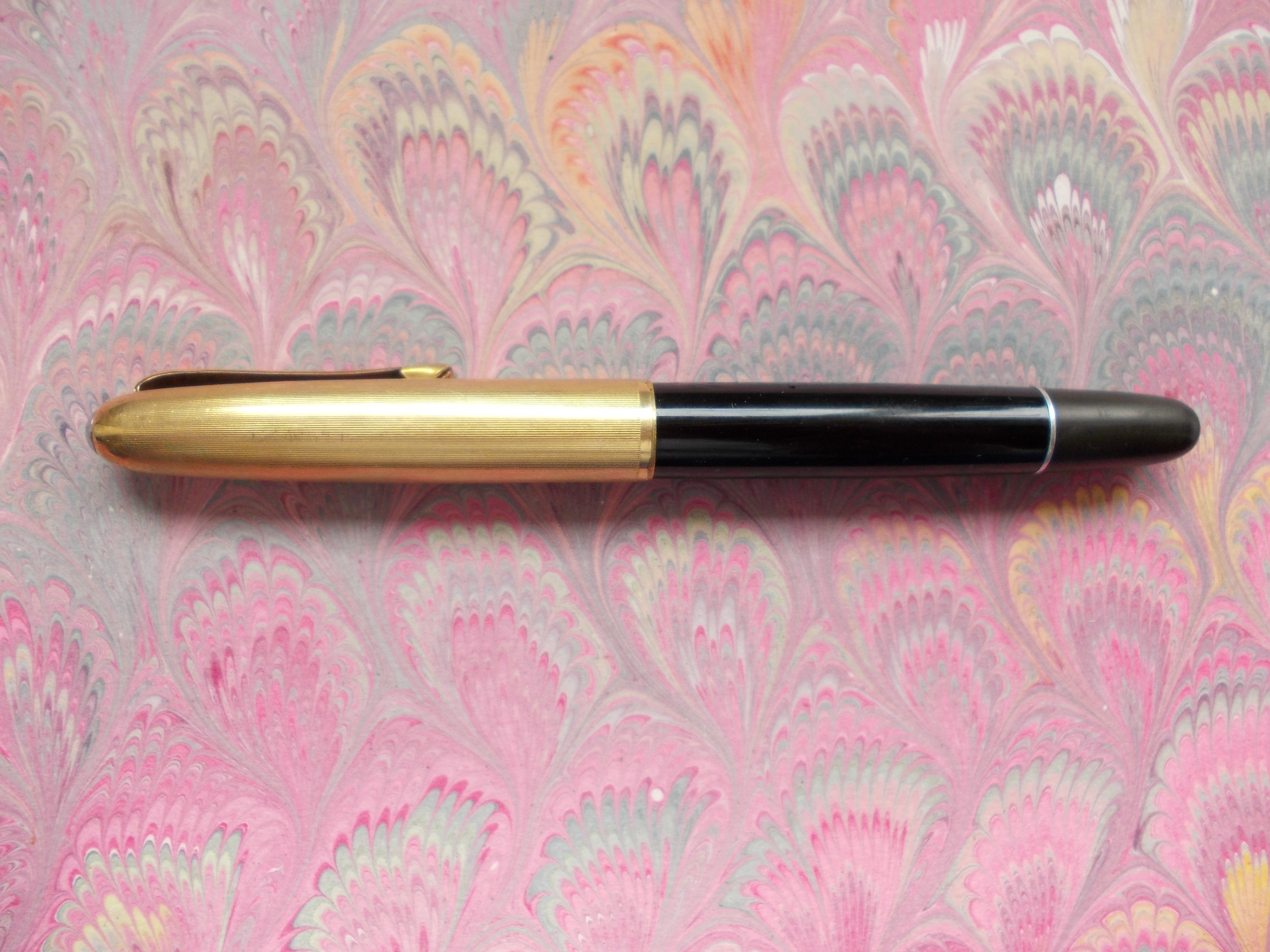 6) Safety laminata oro. Probabilmente italiana anni '30. Il pennino ha perso l'iridio, ma sarebbe un'eresia sostituirlo con un pennino cinese.