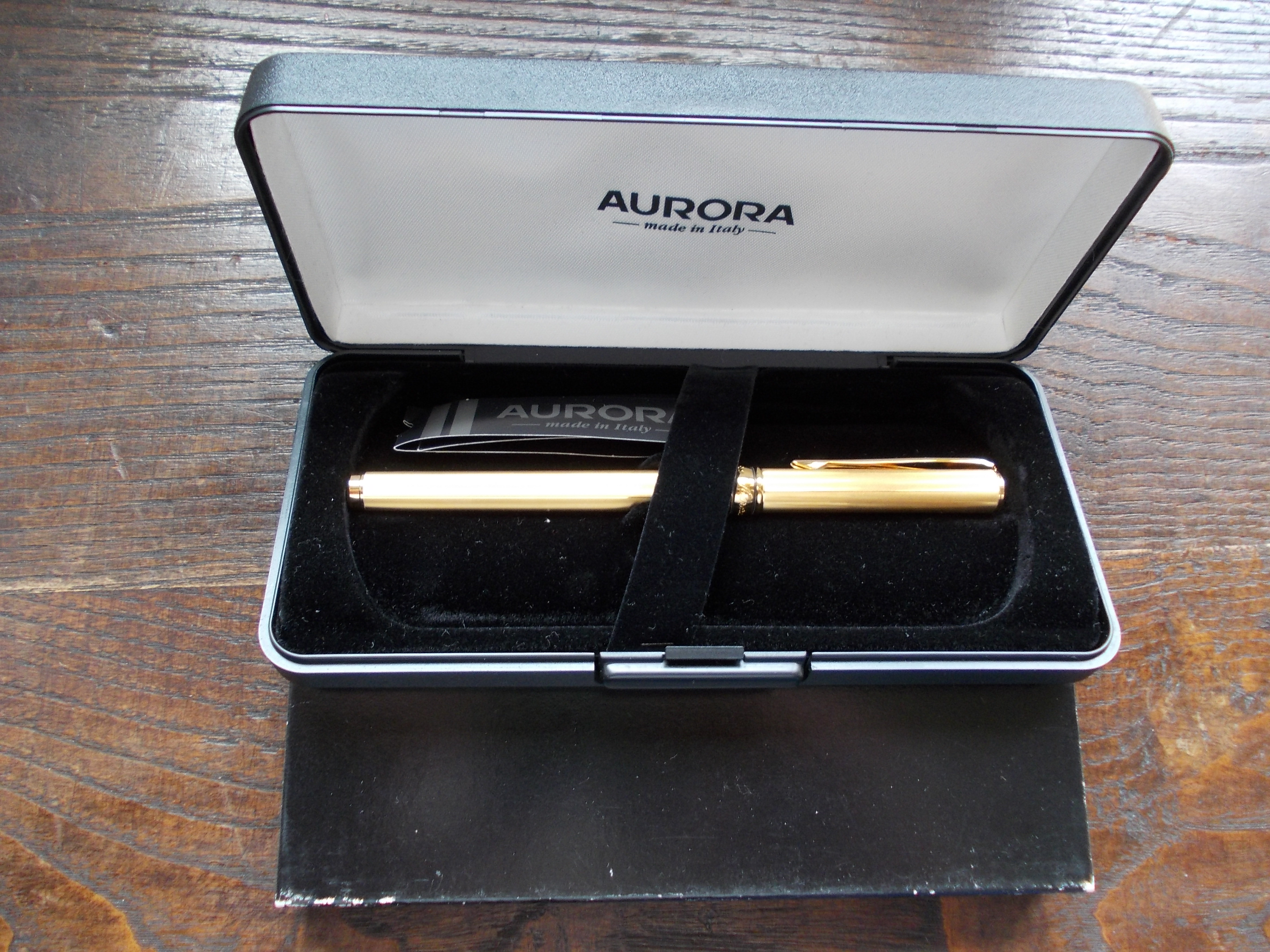 Sailor Progear demonstrator, Aurora 88 Nizzoli, Sheaffer Imperial VIII touchdown, Lamy dark lilac, Aurora Magellano, una Safety vintage laminata d'oro.