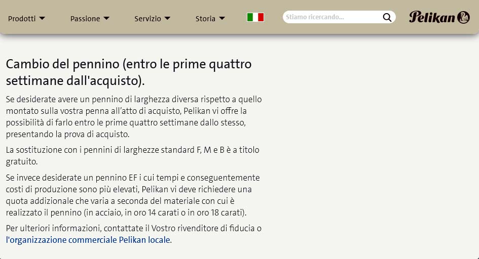 Ho comprato qualche mese fa da una gentilissima rivenditrice affiliata una Pelikan 800, volevo il pennino EF e mi ha consigliato l'acquisto con pennino M per poi chiedere, subito, il cambio in fabbrica. Si è occupata di tutto lei e ho avuto, qualche settimana dopo ma al prezzo originario, la penna con il pennino della gradazione di mio gradimento. Come suggerito sopra forse converrebbe comprarla a prezzo più basso e poi farsi cambiare subito il pennino, l'unica pecca è l'attesa di qualche settimana.