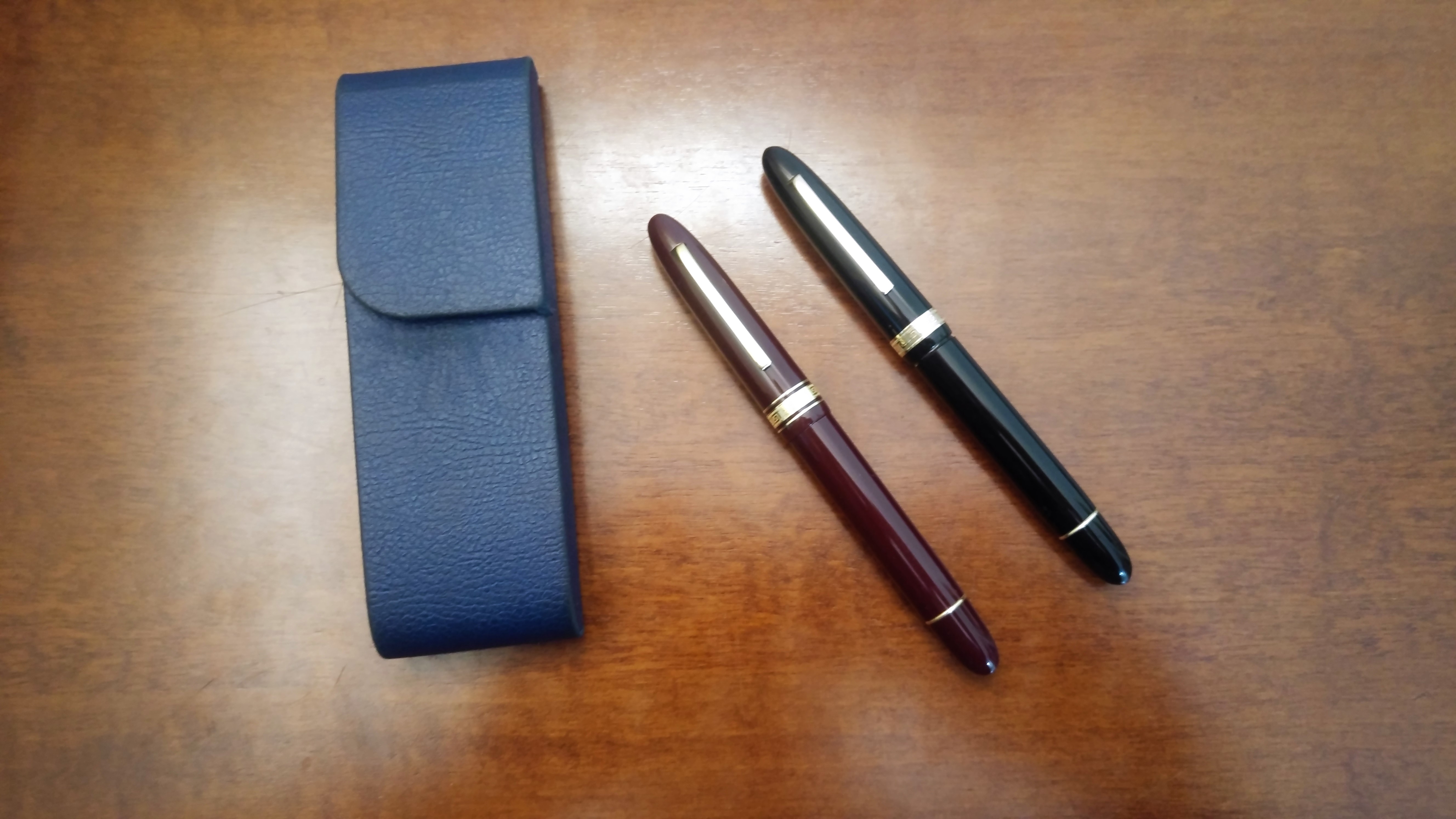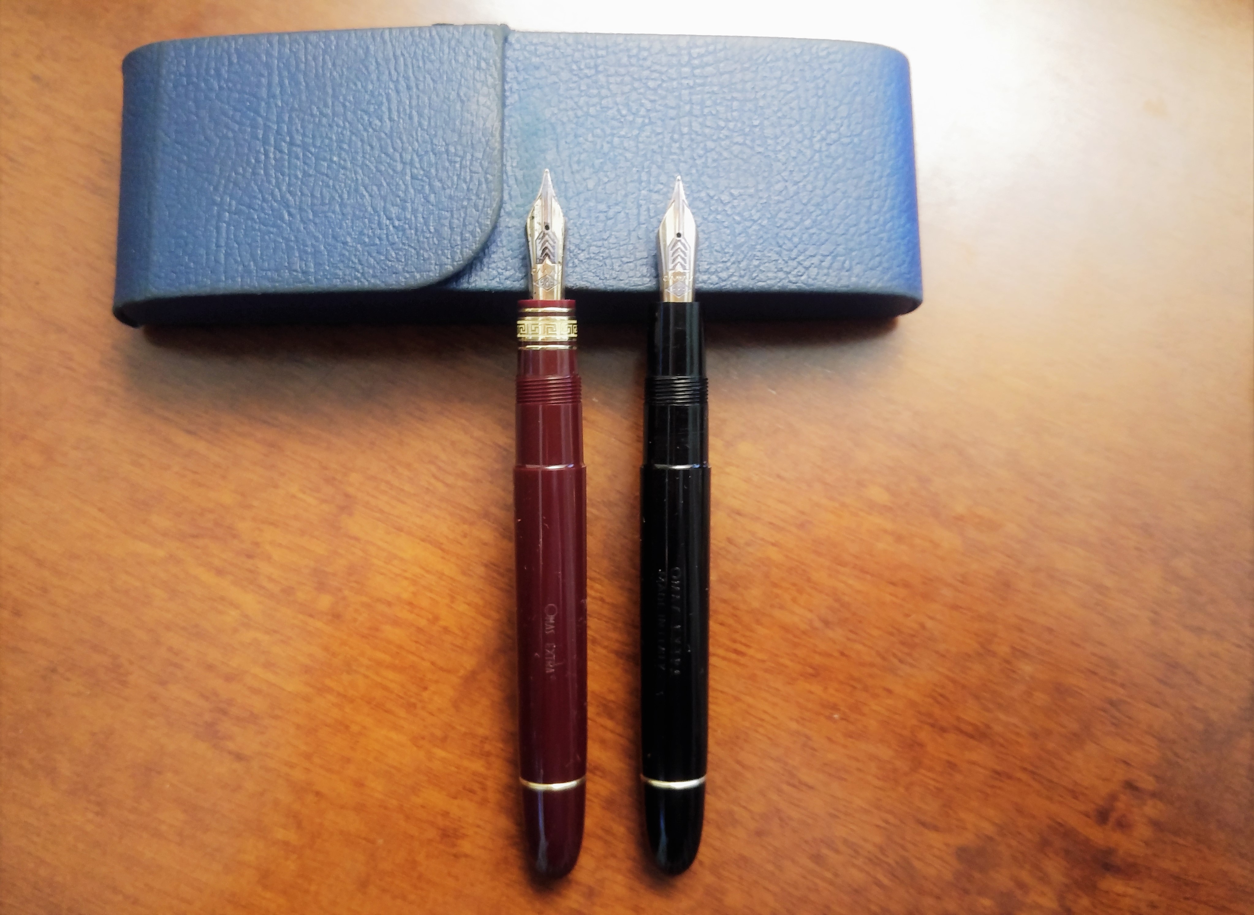Entrambe sono in resina vegetale, con lo stesso caricamento a pistone e lo stesso pennino 14K.