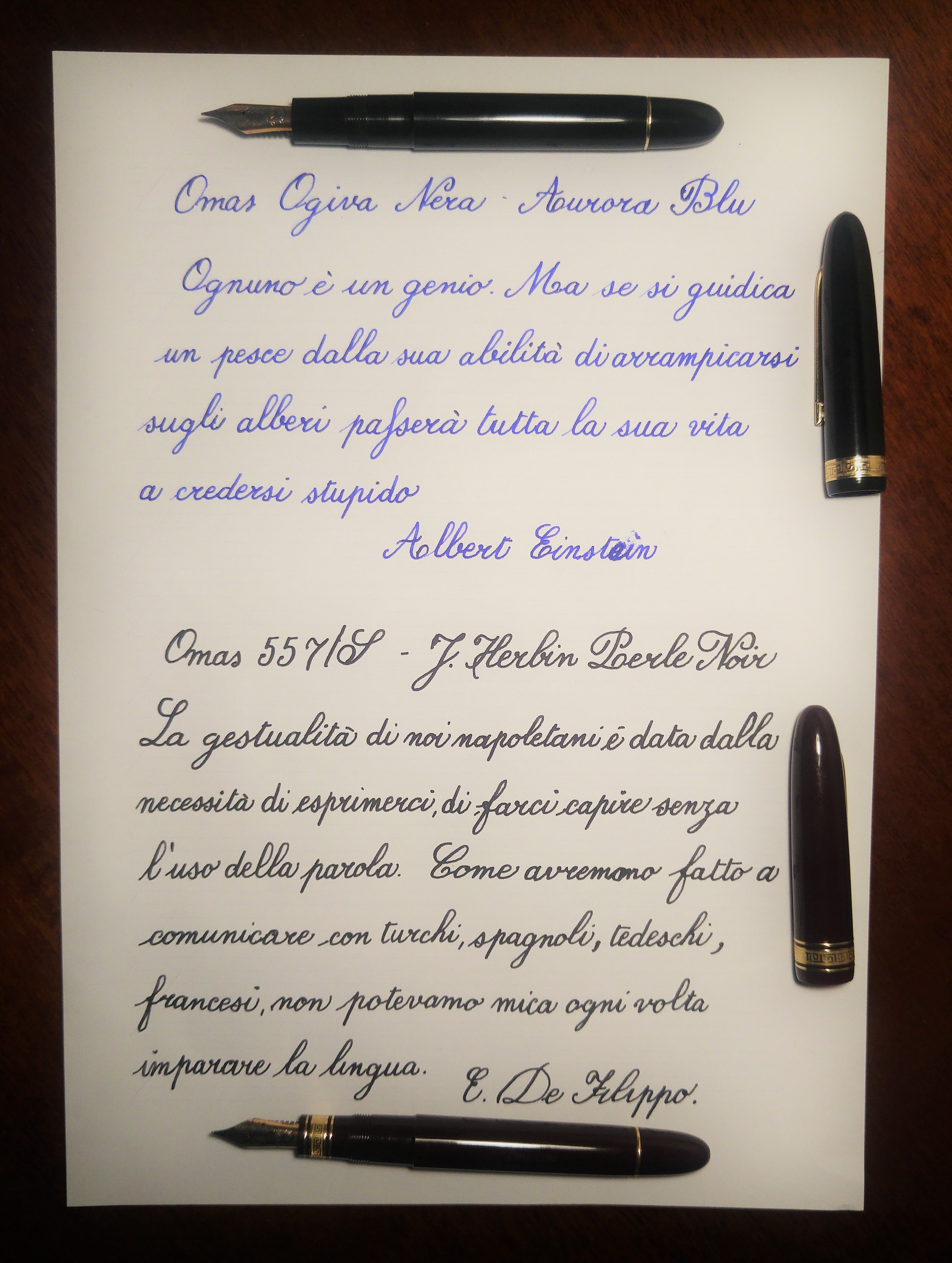 Solo che il pennino della Ogiva è di una generazione precedente, quindi molto più flessibile di quello della 557/S, e la penna stessa ha un flusso maggiore, per cui riesco ad usare meglio la 557/S con pennino M su carte più dozzinali.