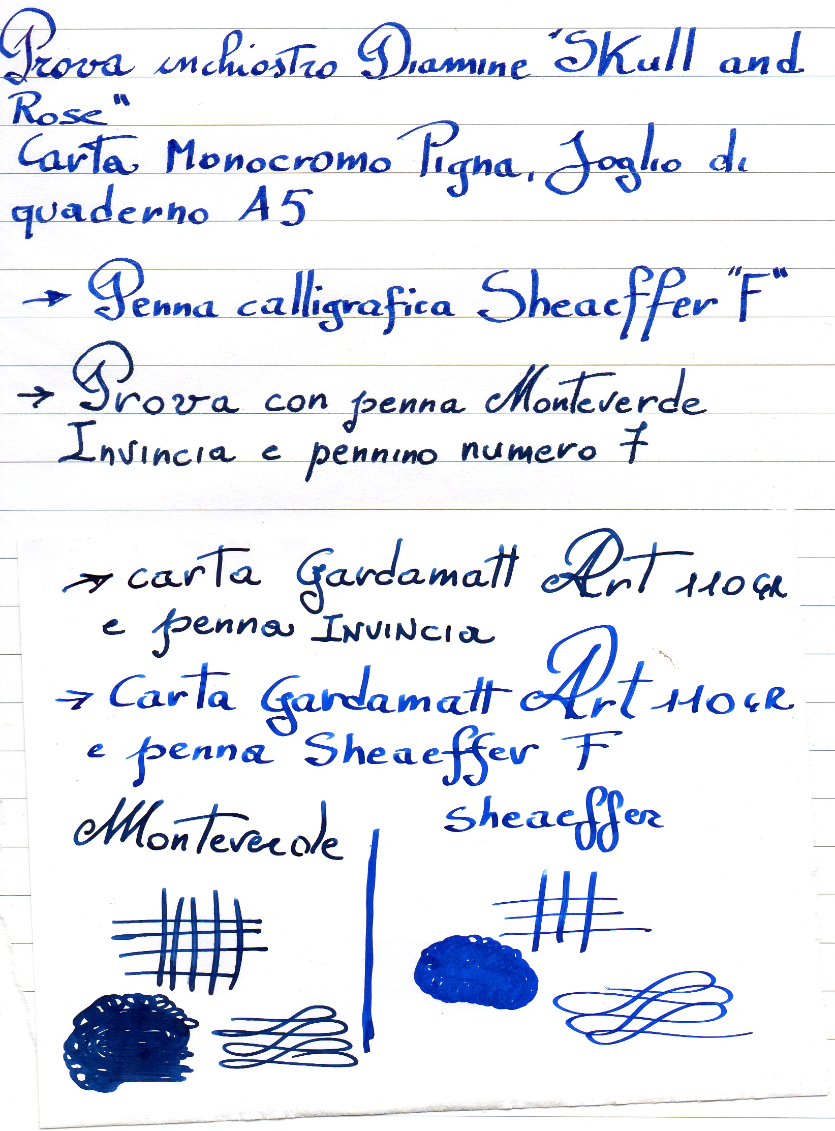 Come già è stato detto, sicuramente dipende dalla carta e dal tratto del pennino. lo sheaeffer a punta larga è progettato per un tratto largo, ma con pochi micron di inchiostro di altezza, mentre quello della monteverde, evidentemente non lo avevo pulito bene, dato che si vede ad occhio, è anche più scuro.
