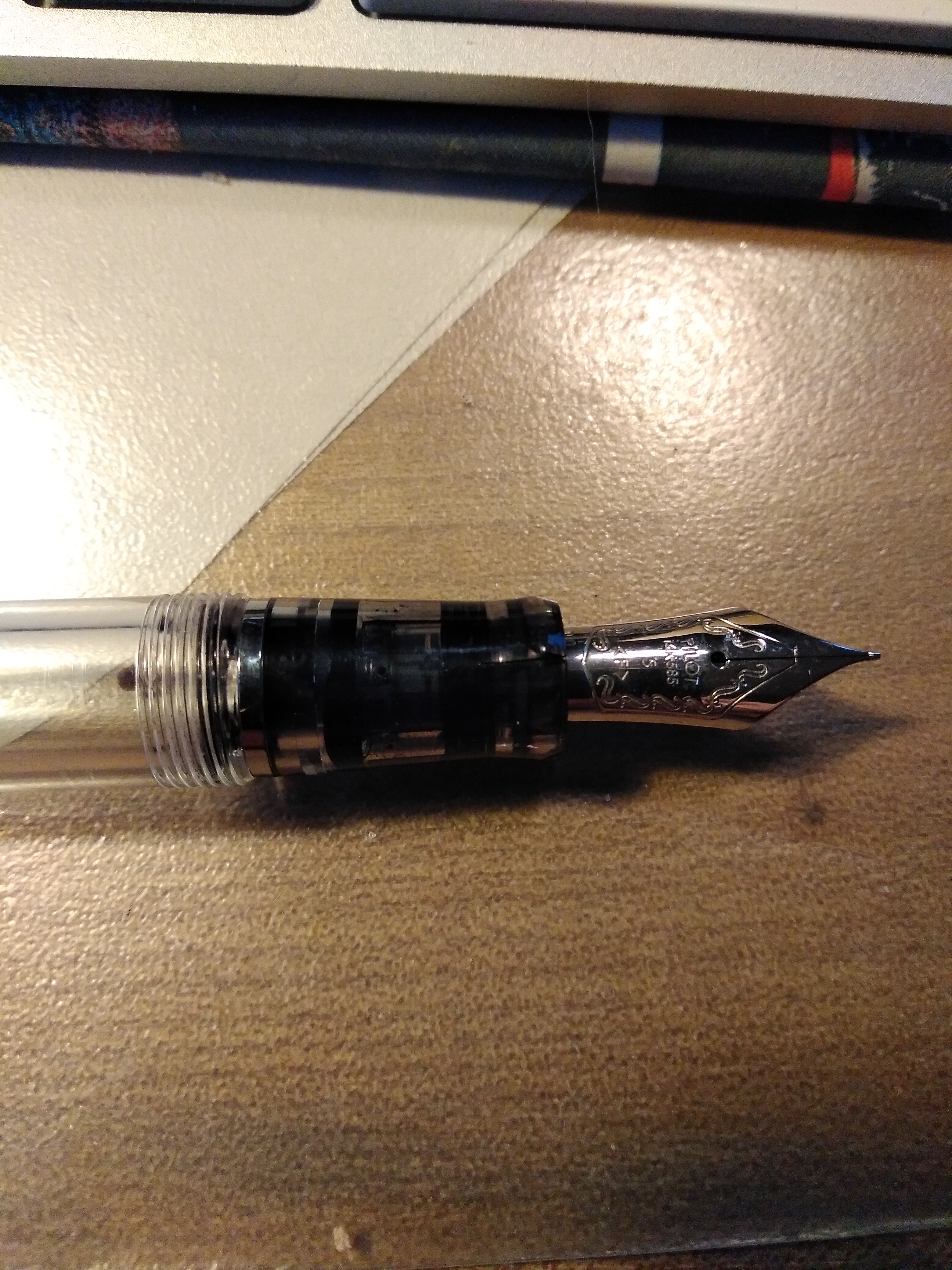 Purtroppo, per mia noncuranza, mi è caduta a terra di piatto, mentre stavo camminando velocemente. Era chiusa, il pennino (apparentemente) non ha danni. Ha cominciato a perdere inchiostro. Ho provato a smontare il pennino e pulirla, con l'effetto che ora perde molto più di prima, tanto da essere inutilizzabile. Dato che non vedo pezzi rotti o incrinati, temo di averla rimontata nel modo sbagliato. Forse questo dice quanto negato sia per le riparazioni.