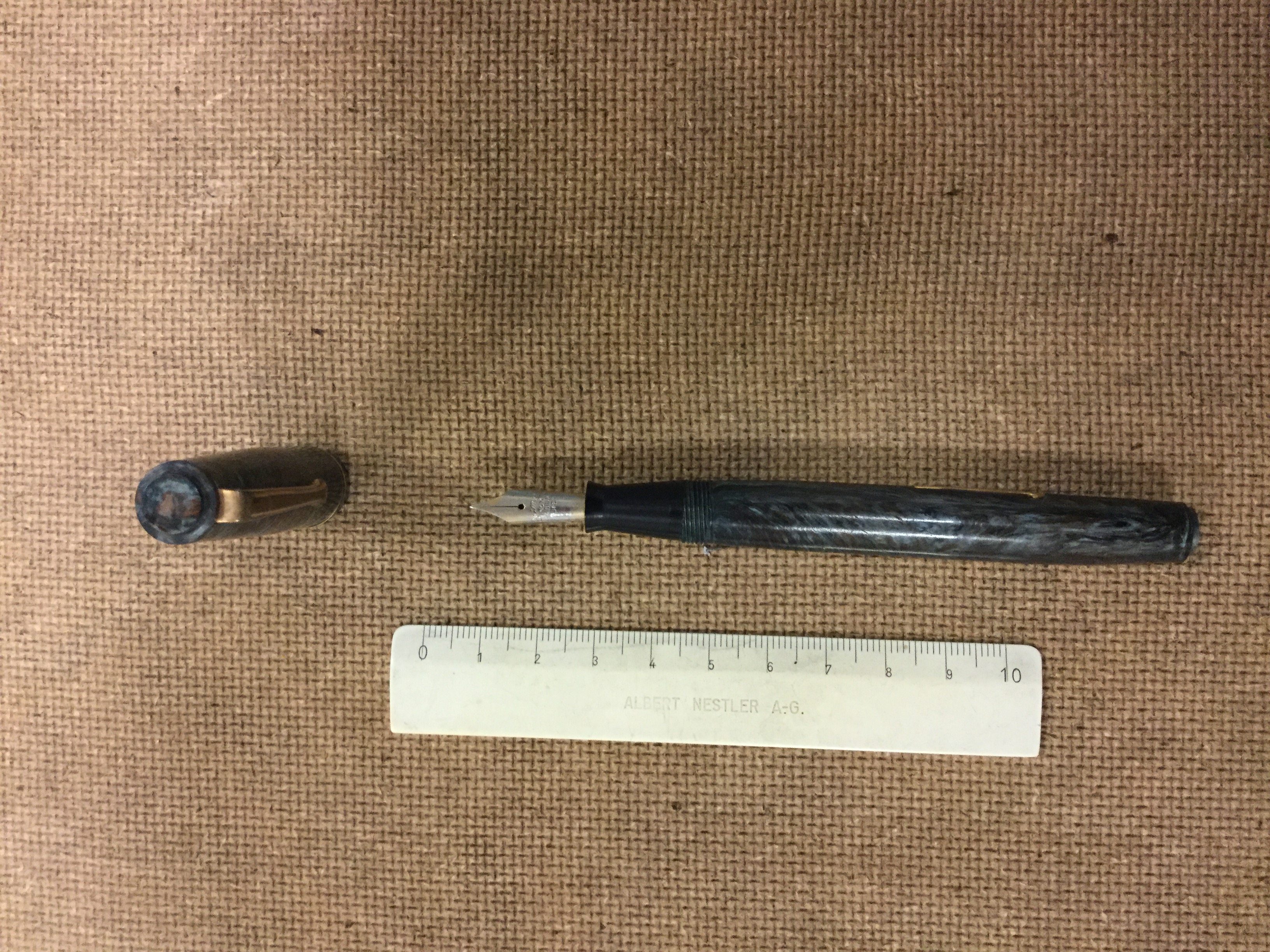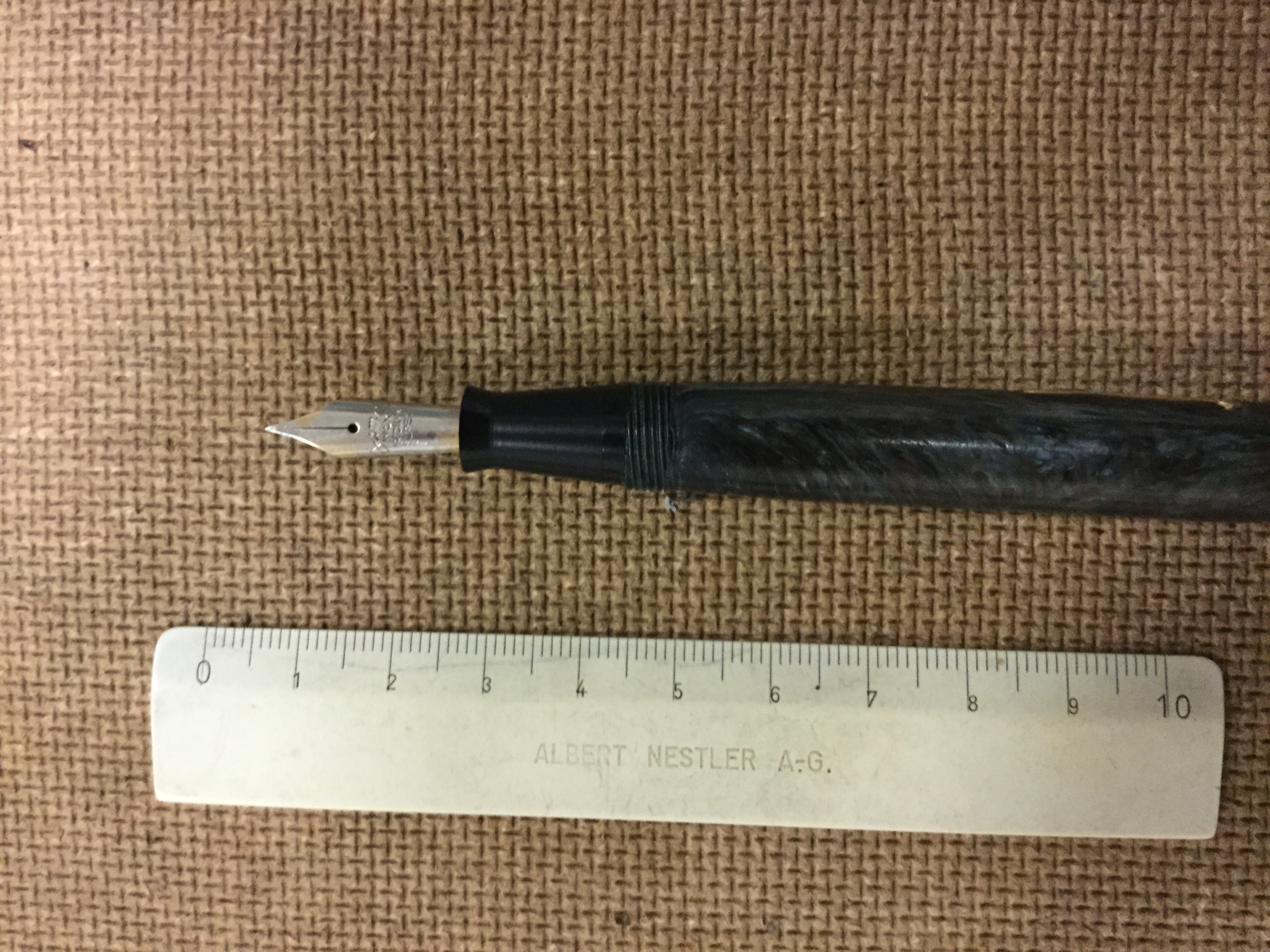 Ma sul pennino che c'è scritto? Le foto sono troppo sfocate per capirlo. Per il periodo siamo anni '30/40 dallo stile, ma ... lo stile non è un criterio di datazione significativo.
