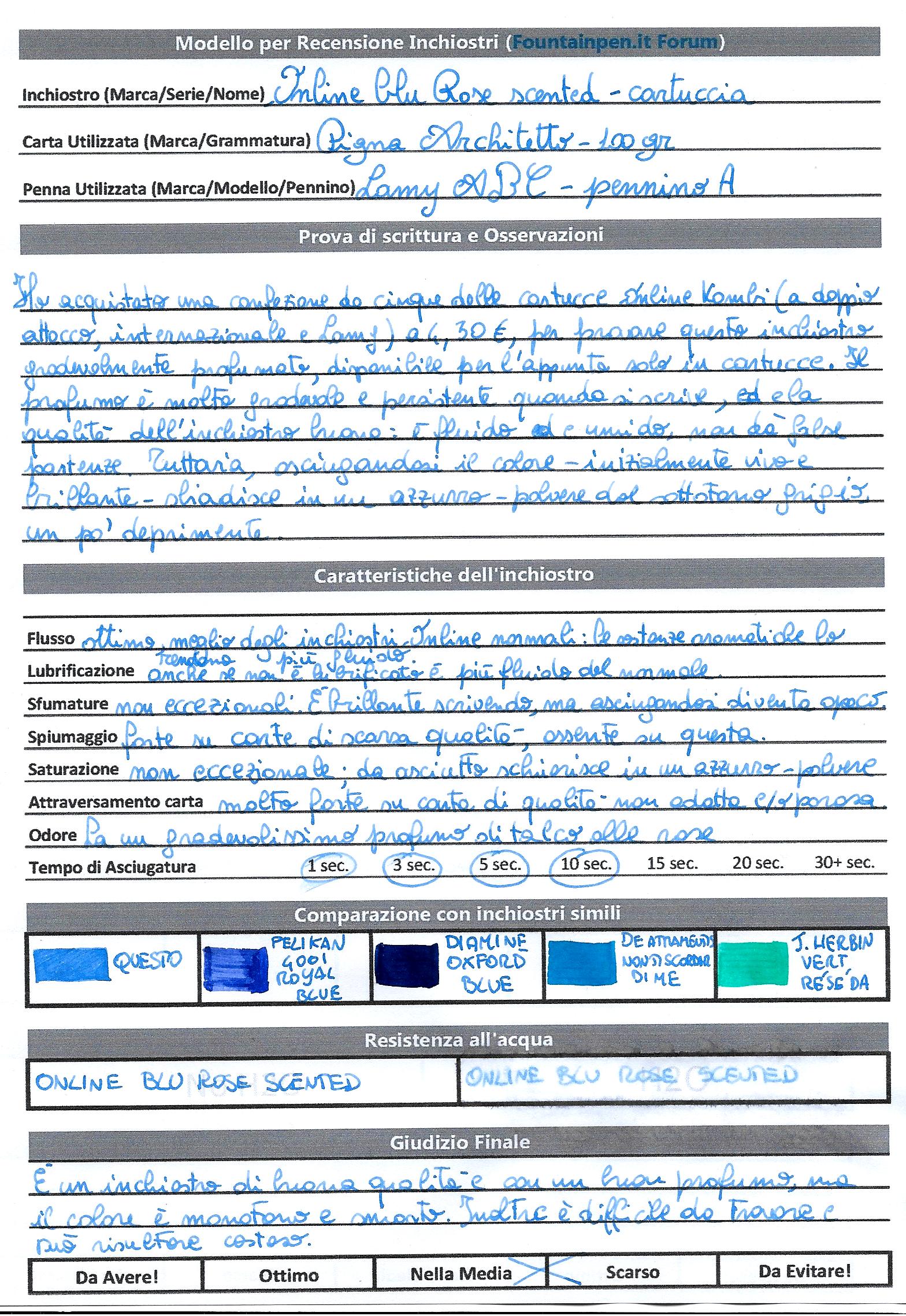 Si tratta dell'inchiostro Online blu, disponibile unicamente in cartuccia, al profumo di rosa.