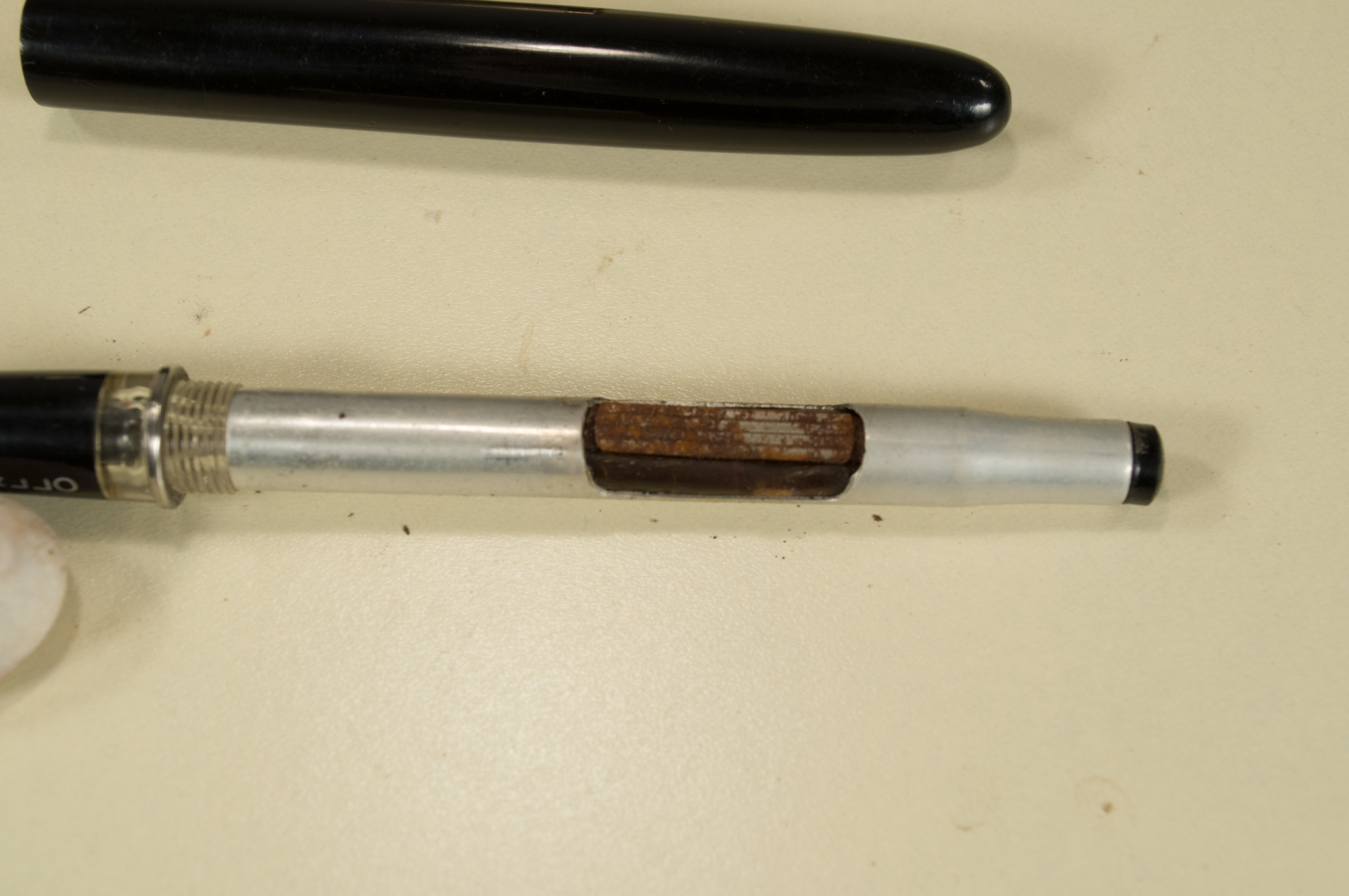 Questo è uno scopiazzo del sistema di caricamento "aerometric" della Parker. Dentro al coso di metallo con la levetta da pigiare si trova(va) un sacchetto, non un diaframma.