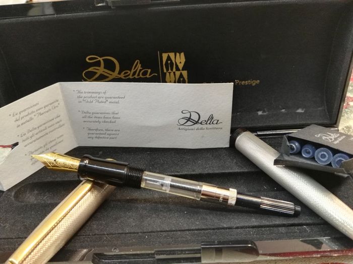 Le prime Delta avevano questa caratteristica: argento massiccio fuori e un pennino molto meno nobile in acciaio dorato e costruzione medio/bassa dentro. Questa era la filosofia iniziale di Delta; il tempo poi ha portato tante penne di alto livello (Dolcevita stantuffo un nome per tutte) ma ha fatto anche chiudere il capitolo qualche anno fa.rolex hunter ha scritto: ↑lunedì 1 aprile 2019, 17:18 Comunque, lasciando perdere il valore "venale", penna placcata argento con pennino in acciaio laminato oro; mi ricorda le prime delta, PRIMA che fosse conosciuta (quindi, a memoria, fine anni 80/primi anni 90);