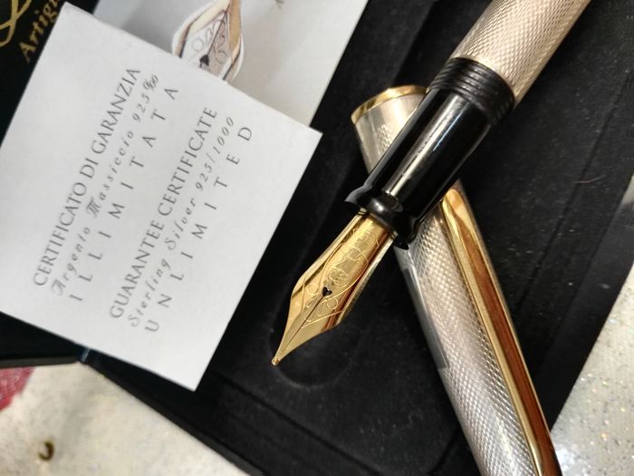 Salve a tutti, mi rivolgo alla conoscenza illimitata di questo forum. Mi sono imbattuto in questo articolo e vorrei avere qualche informazione per decidere sull'acquisto. Per ora so solo che si tratta di una penna placcata in argento 925. Qualcuno ha idea del prezzo fino a cui dovrei spingermi? Spero di non aver infranto alcuna norma del regolamento.
