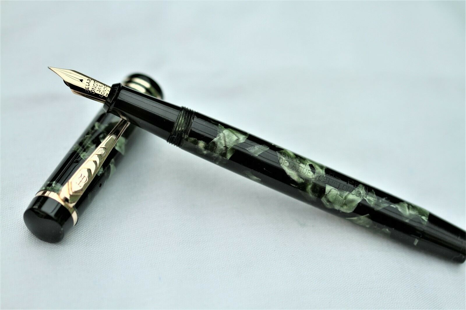 Ha un pennino fine oro 14 ct. ed il caricamento piston filler.