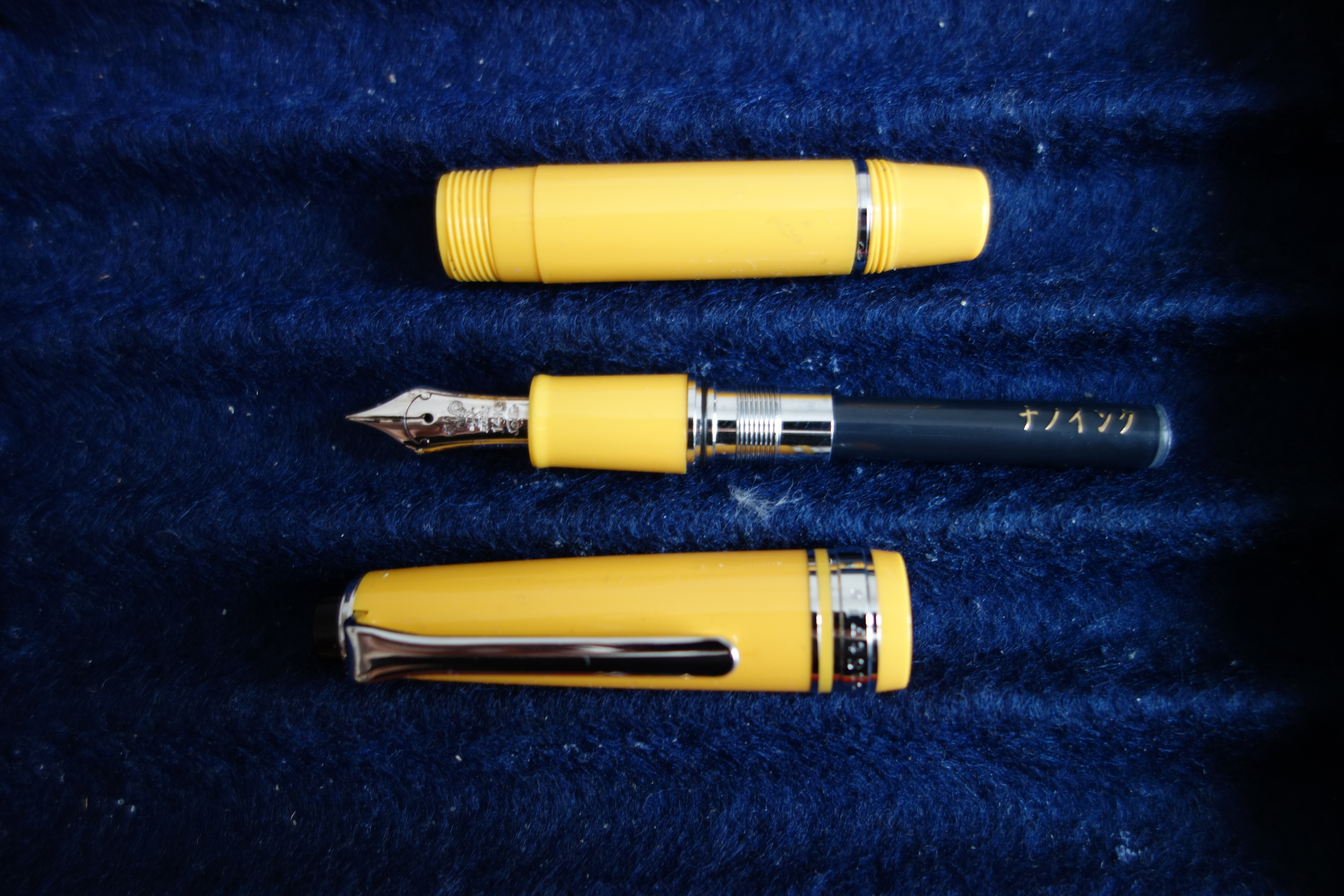 Il corpo della penna è praticamente uguale a quello di una Sailor Pro Gear slim tranne che il fusto è più corto di ( 56,6 mm contro 74mm di una pro gear) e presenta una filettatura per permettere di avvitare il cappuccio ottenendo così una penna di lunghezza standard. Come scrive? Coma una Sailor F, deve fare il suo giusto rodaggio , come ogni penna nuova, ma presenta il carattere di un signor pennino da lunghe sessioni, e già da nuova scorre in maniera incredibile.