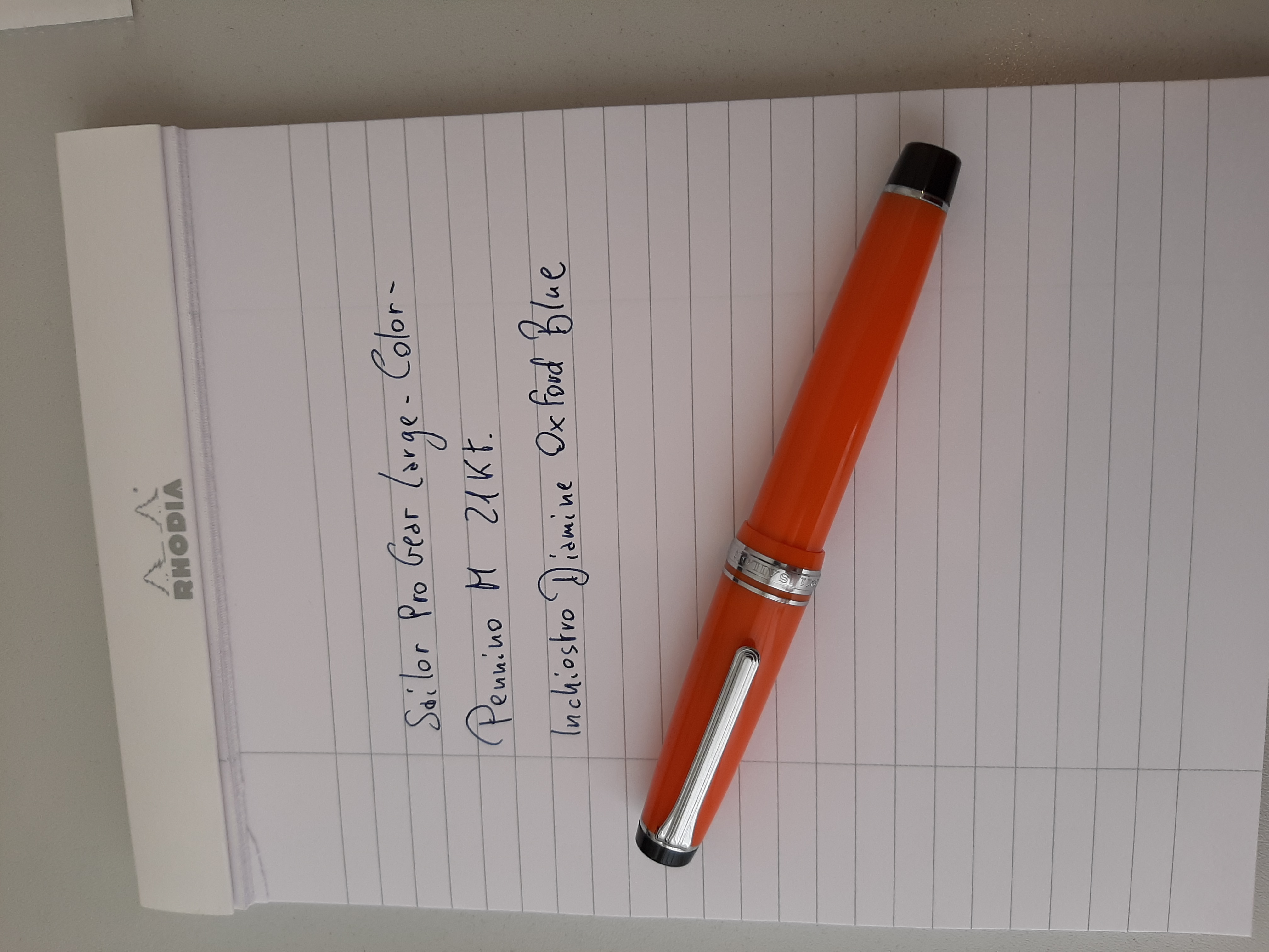 Da un paio di mesi ho questa Sailor Pro Gear Large della serie "Color", in un inconsueto arancione per una Sailor, che in genere non è che si faccia molto notare per la fantasia della veste delle sue penne.