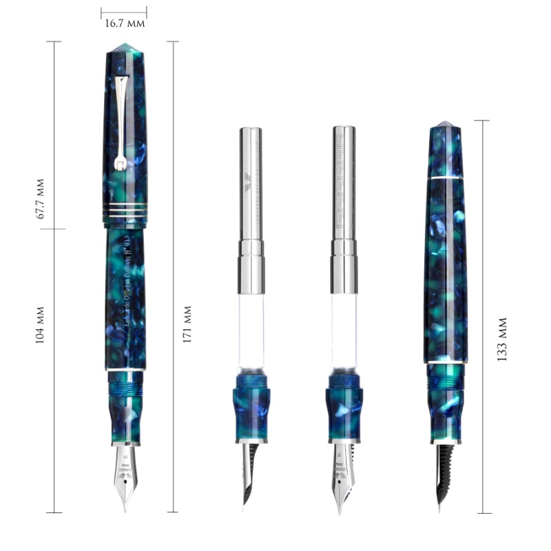 Nelle varie descrizioni che ho rinvenuto in internet ho letto di pistone esterno. Credo che quindi abbia un meccanismo di caricamento come le normali momento zero, ovvero un converter che consenta il caricamento svitando solo la parte finale della penna. Peraltro sempre in internet ho trovato questa immagine a conferma.Rodelinda ha scritto: ↑lunedì 5 agosto 2019, 17:30 Premetto che - forse per fortuna, non lo so - non condivido il giudizio di altri forumisti: io posseggo una Leonardo Momento Zero Blue Hawaii, con pennino B, e ha sempre scritto benissimo, digerendo ogni inchiostro e senza perdere mai un colpo.