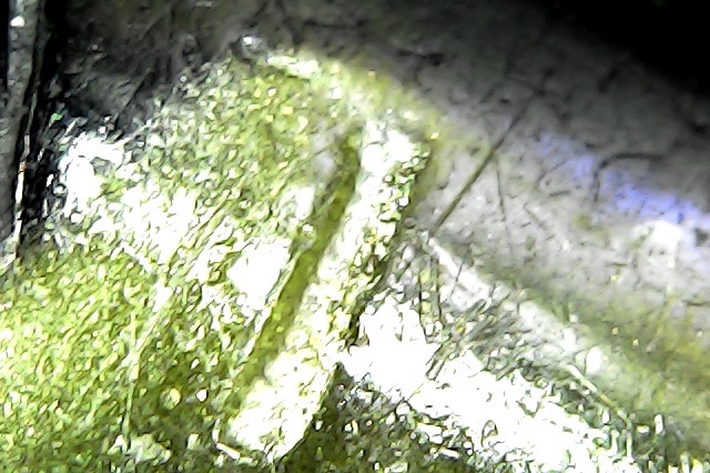 Anche se probabilmente non interesseranno a nessuno (visto si tratta di un caso unico) vorrei comunicarvi le conclusioni a cui sono giunto sulla scritta misteriosa ?assoni. Ho esaminato tutte le lettere con un forte ingrandimento (microscopio) e ho visto che molte, e non solo la prima, sono incomplete. Se si trattasse di usura, da contatto con le dita, l'imperfezione avrebbe l'aspetto di una sottrazione di materiale perdipiù anche senza contorni netti. Invece le lettere incomplete lo sono perché non sono state completamente incise, c'è del materiale anche dove non dovrebbe. E' come se non fossero state bene incise. Dunque l'imperfezione sta o nello strumento con cui si è effettuata la scritta (questo sì usurato, per es, se si trattasse di una sorta di timbro in negativo) o nell'uso che se ne è fatto, per es. non applicando sufficiente forza (o temperatura?). Conclusione: la prima lettera è una T non completamente incisa e la parola completa è pertanto Tassoni.