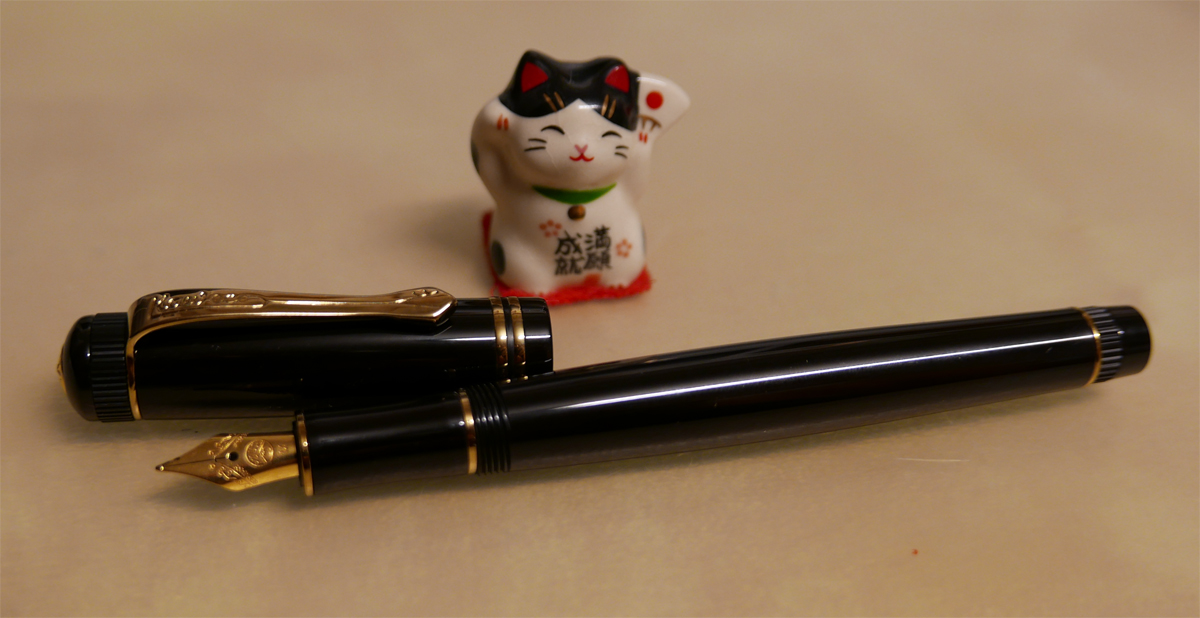 La mia numero uno attuale: Kaweco Dia 2 (ri-pubblico una immagine già pubblicata, il gatto giapponese è solo decorativo, lei è tedesca…)