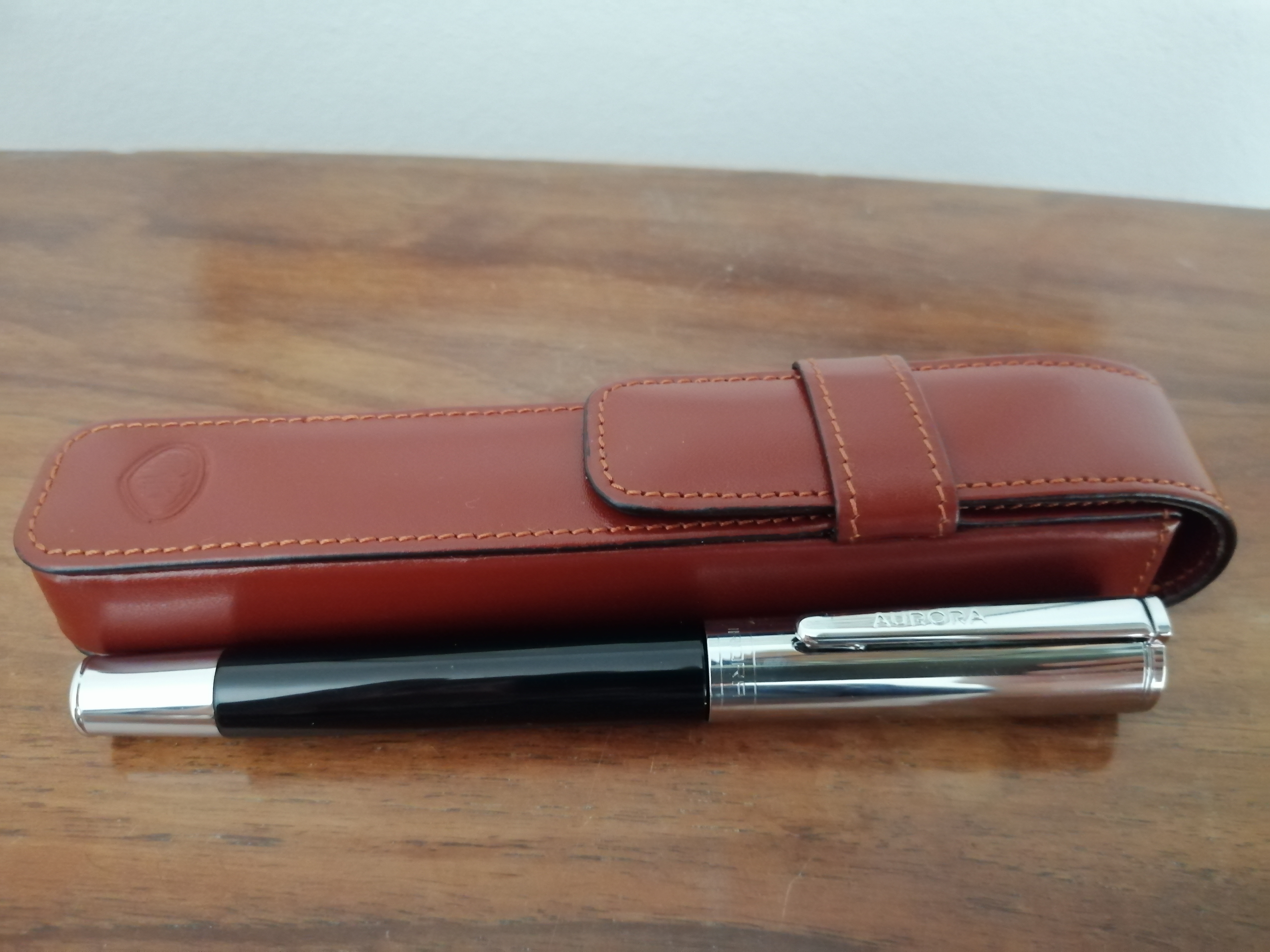 Ciao a tutti. Volevo condividere con Voi questa mia botta di fortuna che ho avuto stamattina. Facendo il solito giretto mi sono imbattuto in un Nuovissimo PortaPenna aurora (fondo di magazzino). Ho tanti porta penne di varie marche....li adoro tra l'altro. Non ho mai trovato nulla della ditta Aurora. Addirittura ha ancora al suo interno la gommina per preservarne la forma. Ovviamente l'ho comprato e vi riporrò la mia Aurora Tu del 2012. La vera notiziona è che il tizio del negozio mi ha chiesto SOLO 2 EURINI per venderlo.