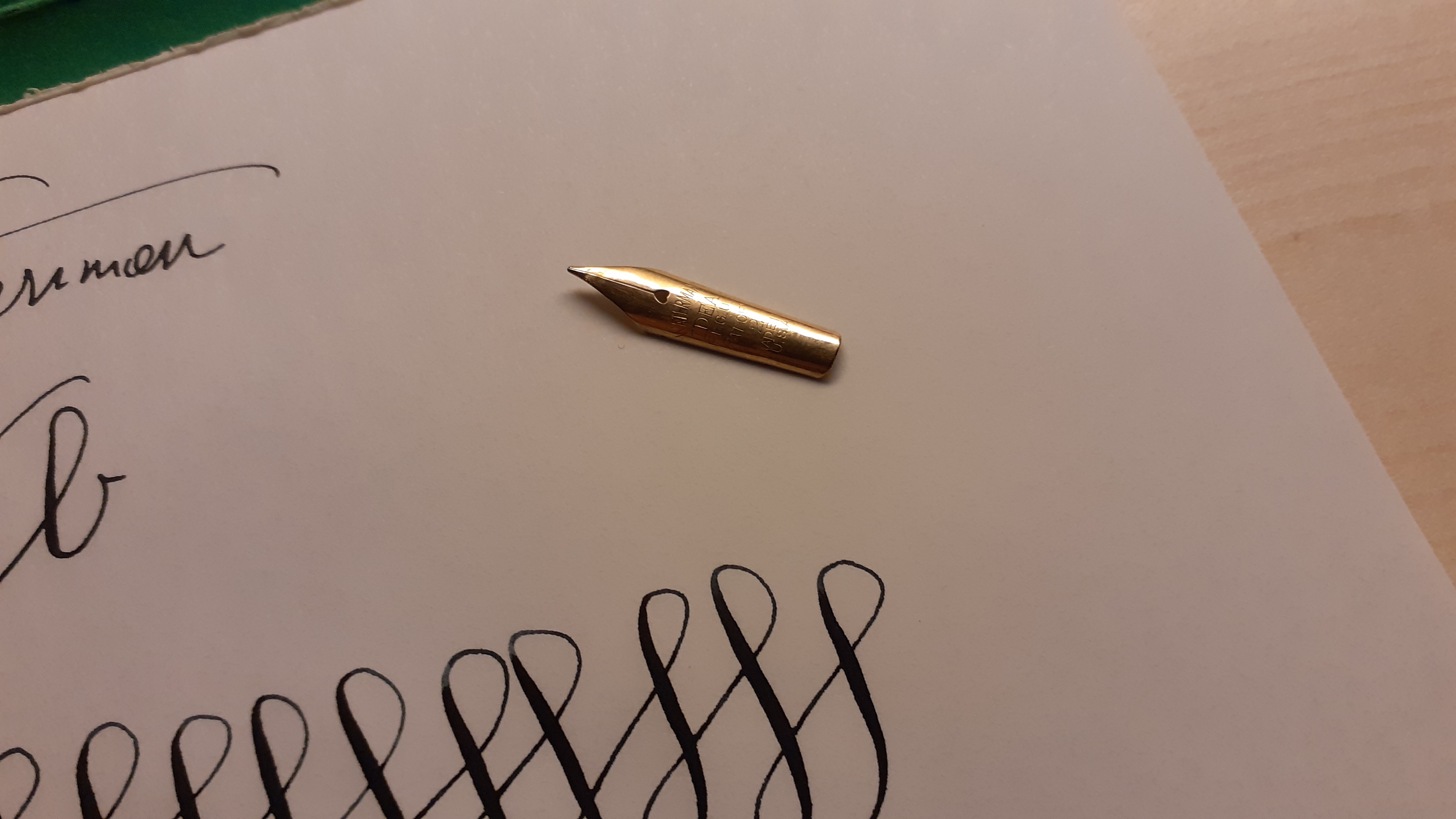 Il pennino non sembra troppo malmesso, non ha perso l'iridio ed è flessibile. Mi sono costruito un brunitoio "di fortuna" da un pezzetto di legno e con altro legno duro ho provato a spingere per raddrizzare i bozzi, di fatto è leggermente migliorato ma ho il terrore di far saltare l'iridio e comunque non riesco a lisciarlo più di tanto.