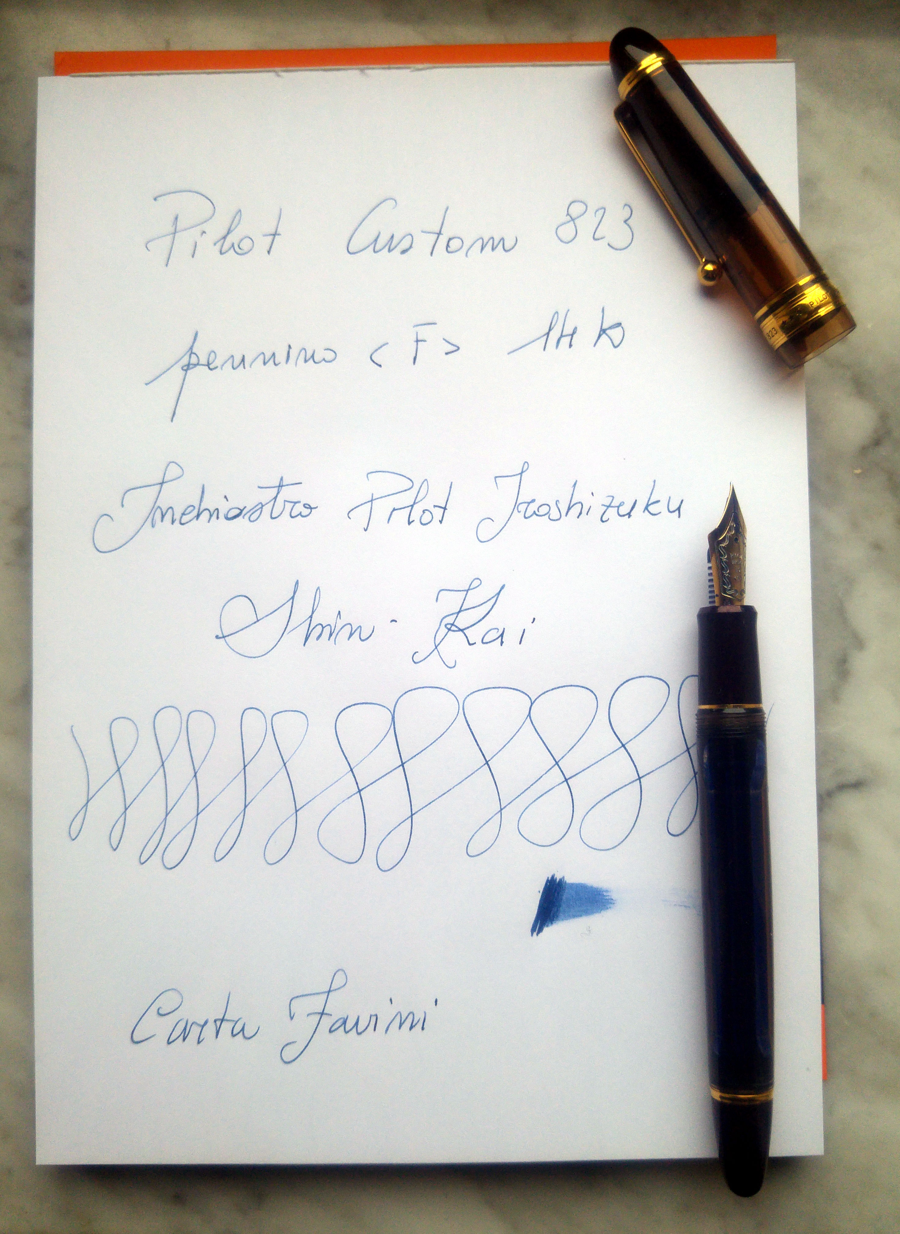 A questa Pilot Custom 823 ci sono arrivato un po' per caso un po' perché era da tempo che cercavo una stilografica giapponese che mi desse soddisfazione e non solo per le sue indubbie performance di scrittura. Non è che me ne siano passate molte di giapponesi tra le mani, ancora non ho avuto il piacere di provare una Platinum, ma di quelle che ho avuto nessuna mi ha deluso per qualità di scrittura. Ho avuto una Sailor 1911 Large, me la sono tolta dopo svariati mesi dopo averla usata una sola volta, poi una Pilot Custom Heritage 92 scambiata dopo poche settimane. Nessuna delle due l’ho tolta perché scrivesse male ma semplicemente perché le trovavo scialbe e plasticose.