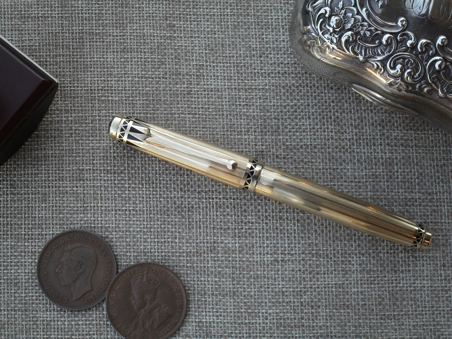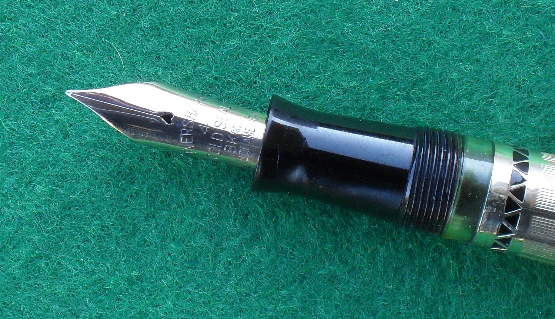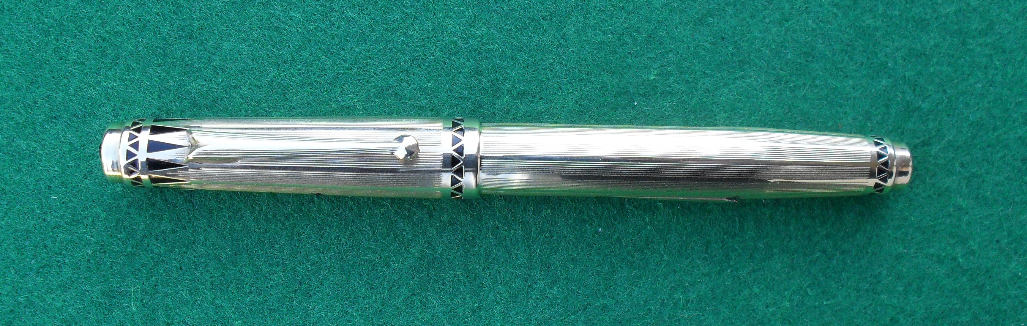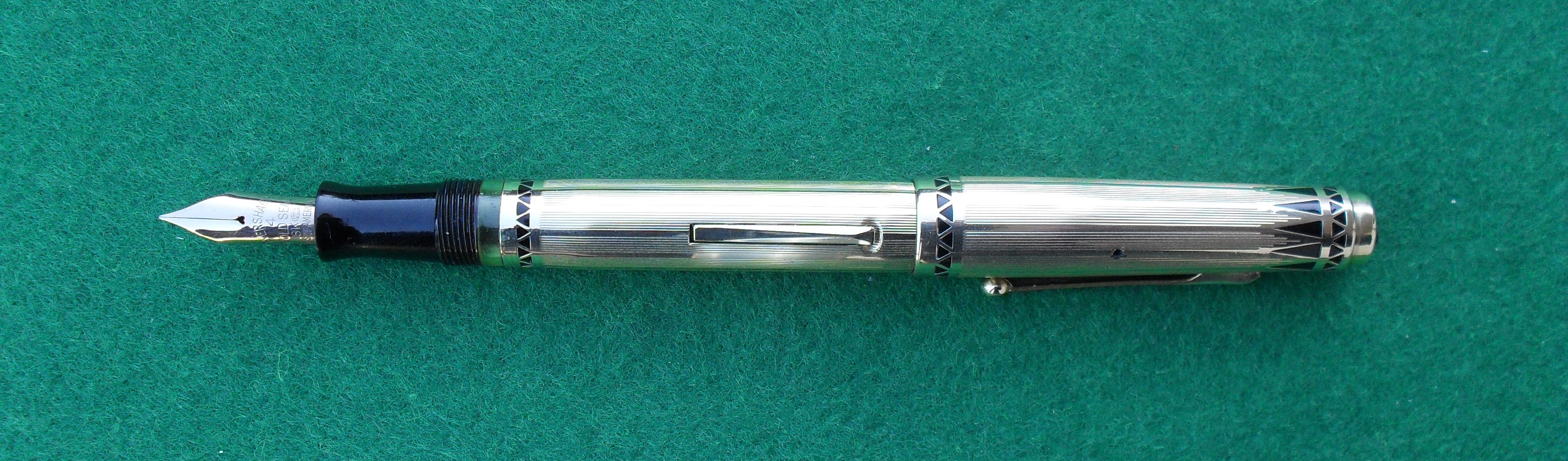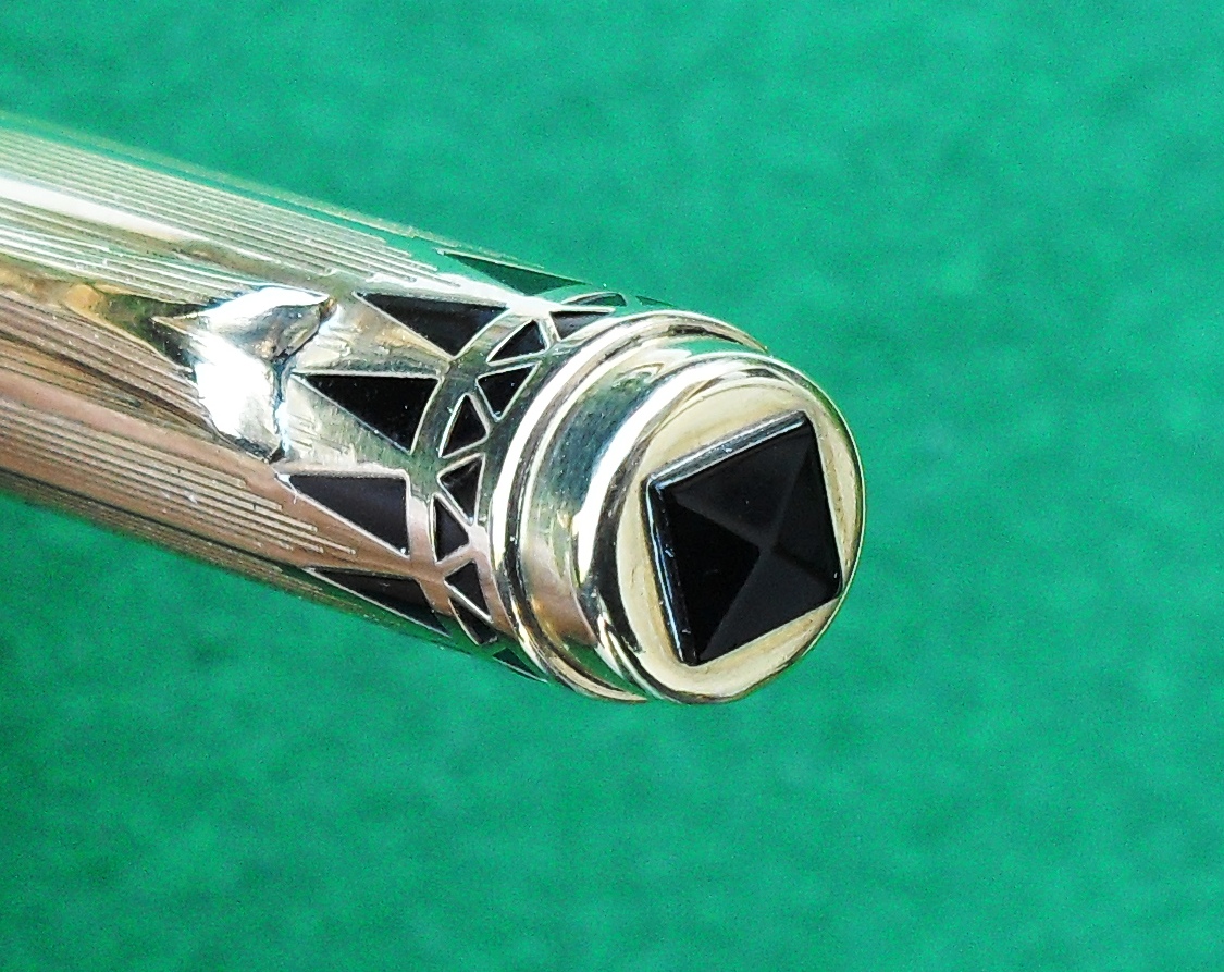Lo so, sembra un titolo strano per un prodotto statunitense, ma guardandola non ho potuto fare a meno di pensare che questa bellissima stilografica, specialmente nella versione placcata in oro che vi presento, sia molto adatta ad un sovrano. Si tratta d’uno dei migliori esempi d’art deco applicata ad uno strumento di scrittura ed è forse la più bella stilografica prodotta da Eversharp.