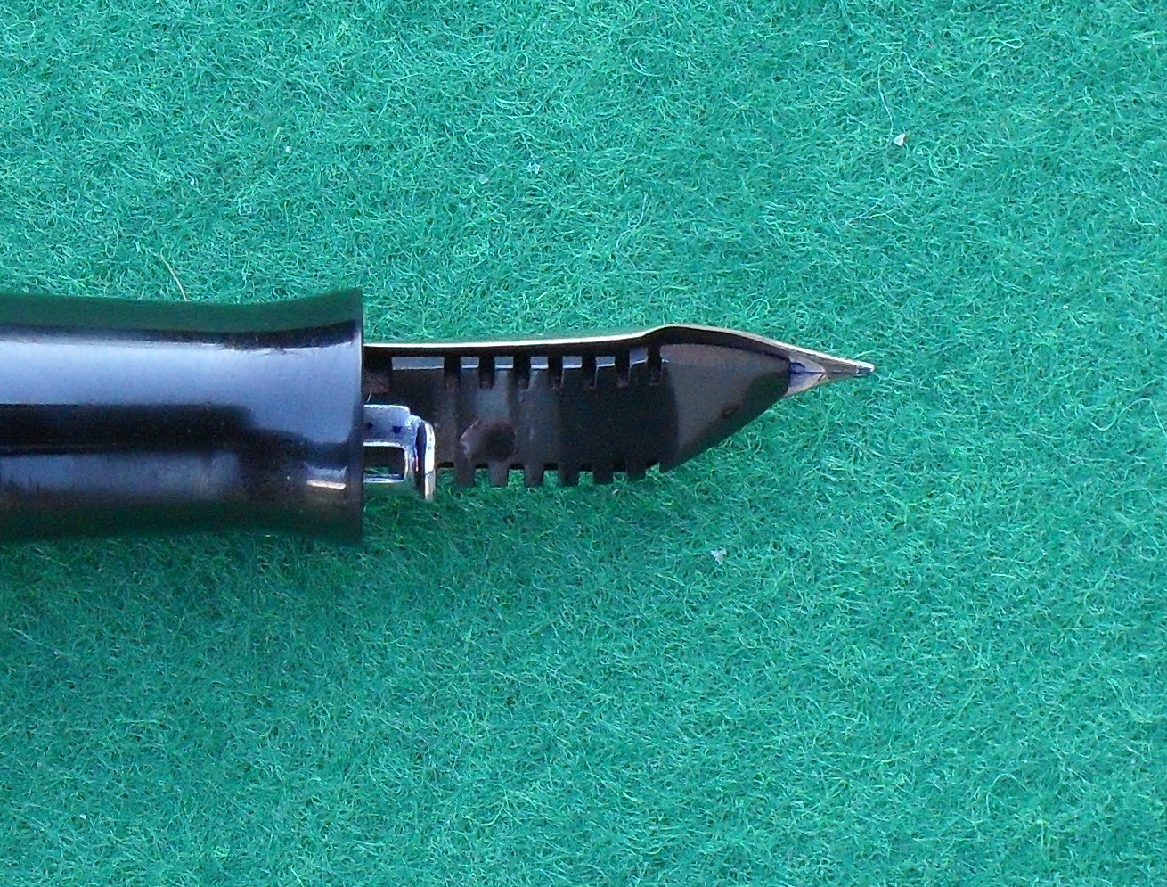 Ho avuto la fortuna di vedermela regalare: proveniva da un fondo di magazzino ma, grazie all’opera sapiente d’un restauratore inglese, ho potuto vedermela restituire in forma perfetta. E’ una delle stilografiche che amo di più e che attualmente mi accompagna in ufficio.