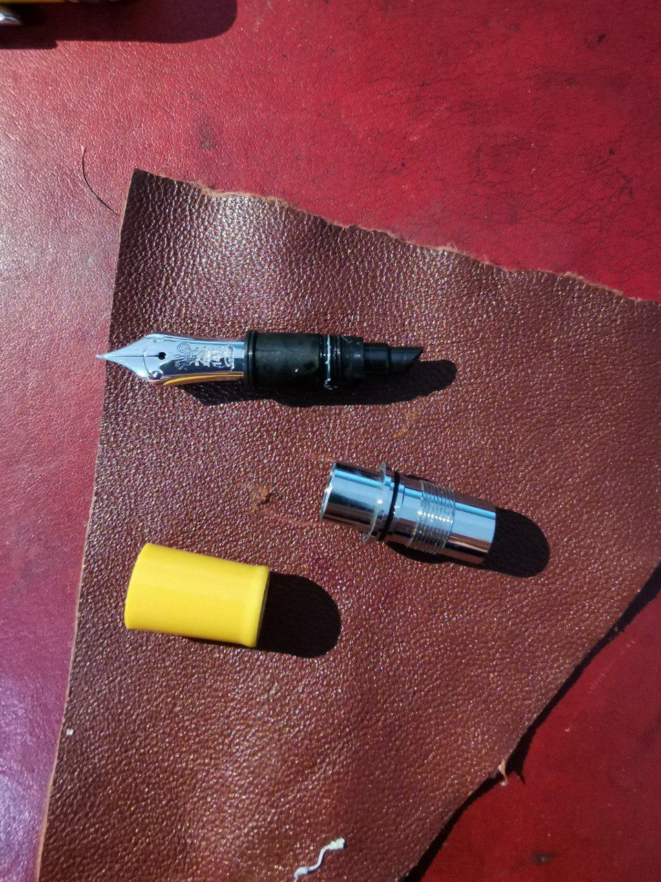 Sul gruppo del pennino c'è traccia di silicone che quindi ripristinerò,a darlo anche sul filetto tra la sezione metallica e la boccola gialla del impugnatura, in effetti ci stavo pensando.
