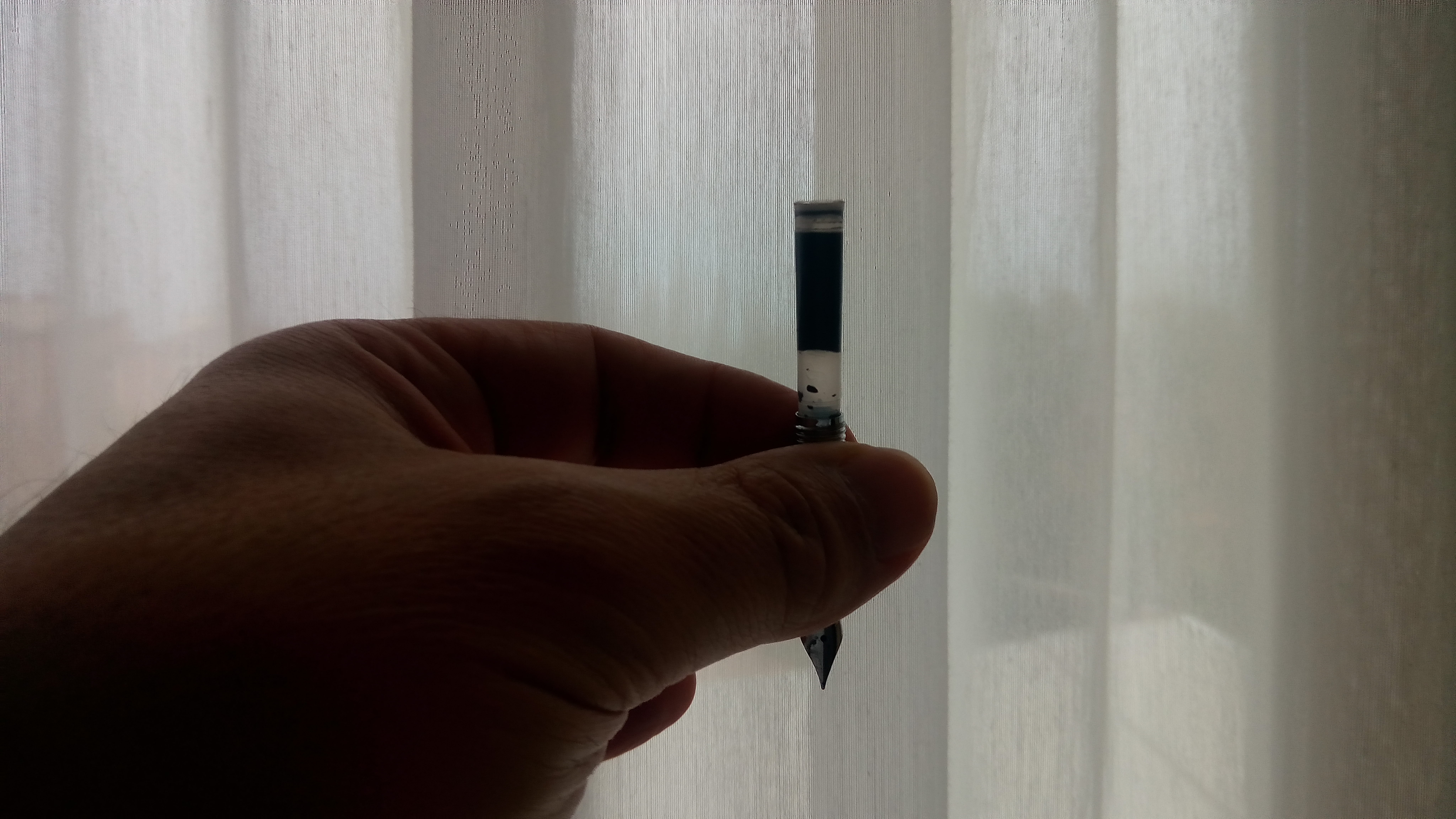 Quanto al converter, una volta ne avevo utilizzato uno con il medesimo inchiostro, ma si verificava lo stesso problema. Poiché era privo di sferetta, nell'occasione ne avevo inserite due di plastica (prelevate da vecchie cartucce Pelikan), mentre in altra occasione ci ho messo un pezzettino di metallo (un piccolo segmento di graffetta ferma fogli), ma i risultati erano egualmente deludenti (occorreva di tanto in tanto scuotere la penna, per superare la resistenza dell'inchiostro).