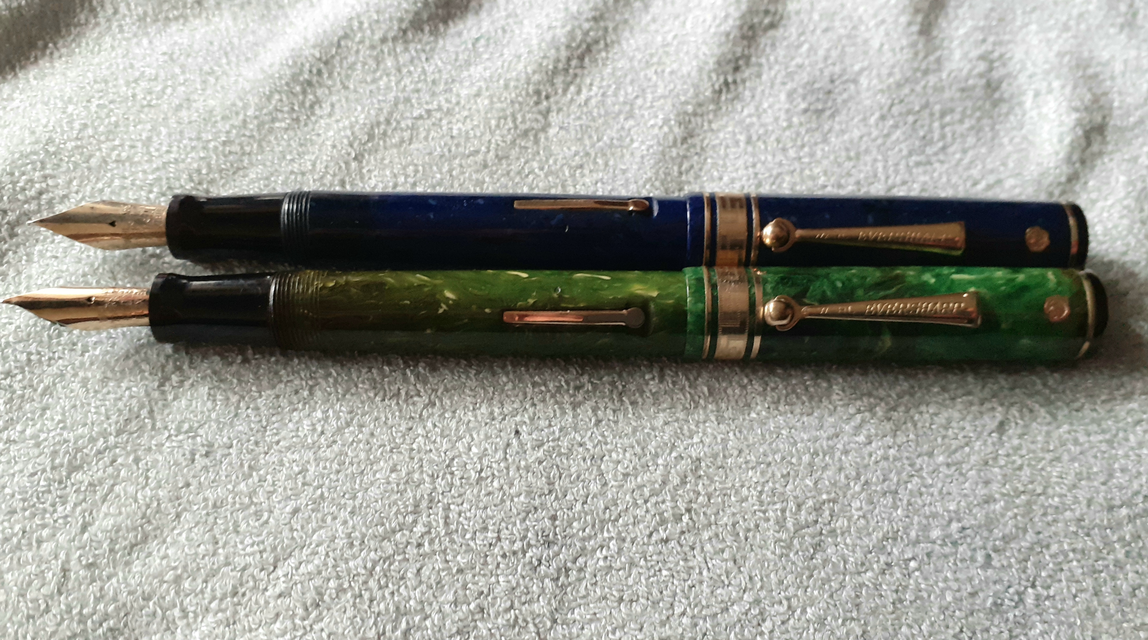 L’ultima comprata è la “Pearl and Black” "Black & Pearl", facilmente databile all’inizio della collezione (1928) per la scritta Wahl Pen (senza Eversharp) sul fermaglio, che ha Il pennino Mainfold Manifold (pennino rigido per la creazione di "molte copie").