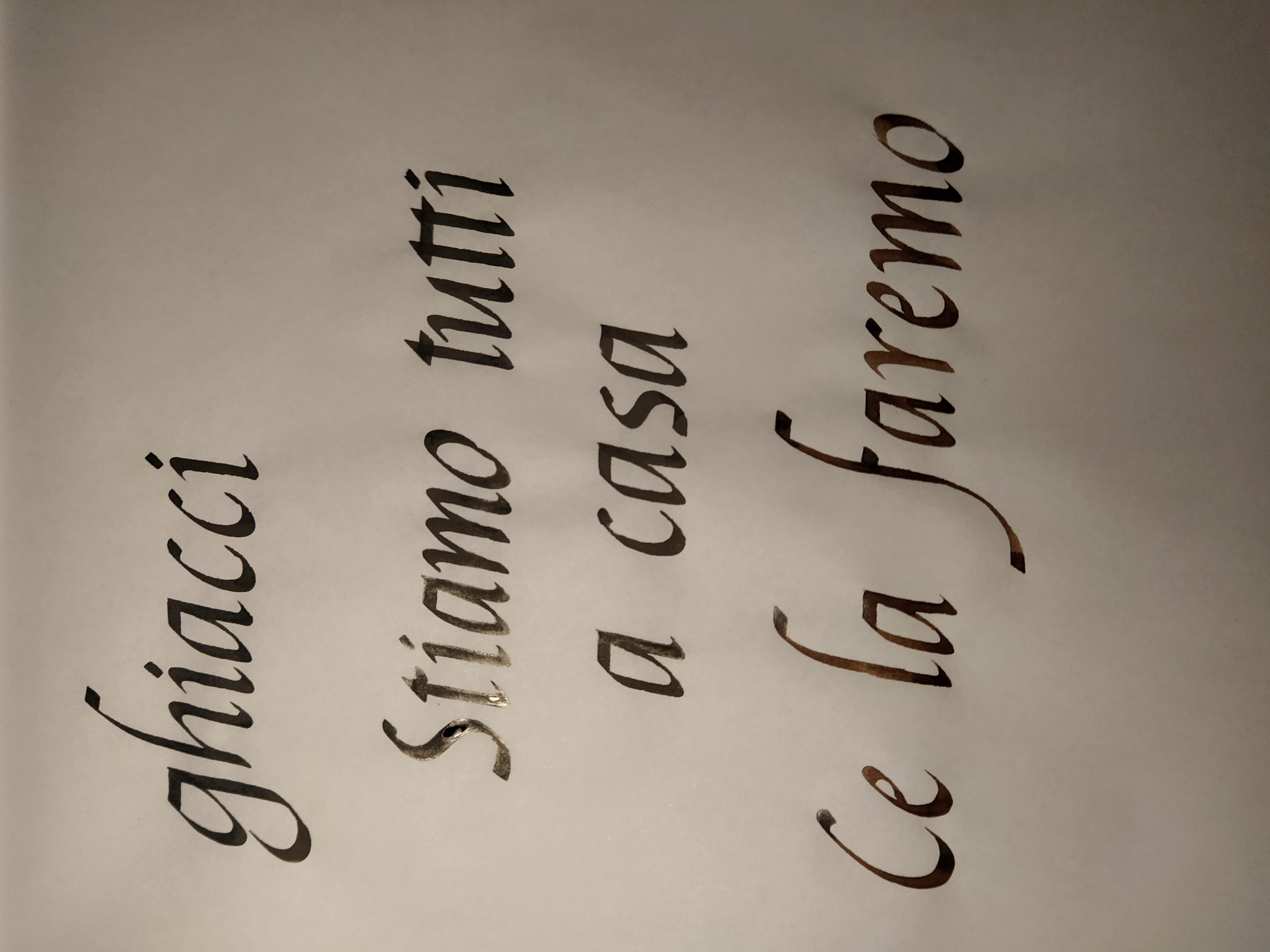 Ciao Ghiandaia, è un piacere vedere che , grazie a Dory, si risveglia il piacere calligrafico; appena ti sarai riabituato/a a qualche altra lettera fari sicuramente degli ottimi lavori. Vedo qualche "altalenanza" nelle d, e a riguardo per "riabituarti" velocemente, suggerirei (senza voiler essere presuntuoso!) di fare il secondo tratto (quello che parte da sopra , se usi la sequenza standard) partendo un po' più a sinistra; questo di solito facilita la chiusura dell'occhiello nello stesso modo della o); inoltre di quel tratto si può anche omettere l'invito a scendere verso sinistra, partendo direttamente con il tratto verso destra (sempre per facilitare la forma inferiore ad o).Ghiandaia ha scritto: ↑giovedì 26 marzo 2020, 21:08 Ho ripreso in mano l'onciale, primo amore calligrafico che, quindi, non si scorda mai. Metodo Kossowska, per adesso mi sono esercitato solo sulle lettere o, c, e, g, d quindi il vocabolario è parecchio ristretto, e anzi la maggior parte del materiale fatto sono solo ripetizioni di lettere una dietro l'altra. Partecipo alla simpatica iniziativa di Dory con molto piacere, con quello che posso.