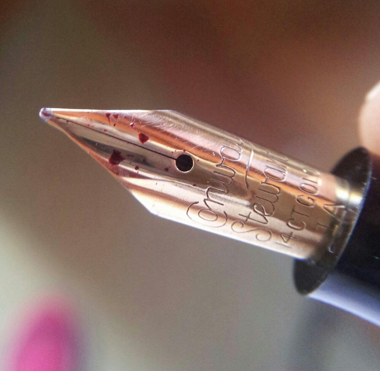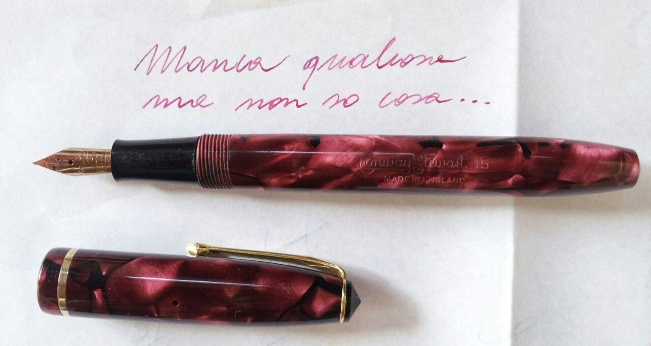 Io sono in difficoltà con una Conway Stewart 15. La penna è bella, scrive bene perché il flusso è costante, il tratto è fine, il pennino leggermente flessibile, non ha false partenze ma non mi fa gioire usarla. Ho provato ad impugnarla in modi diversi, a cambiare l'inclinazione del pennino e effettivamente in certi momenti scrive in modo che più si adatta a me, però... resta qualcosa in sospeso.