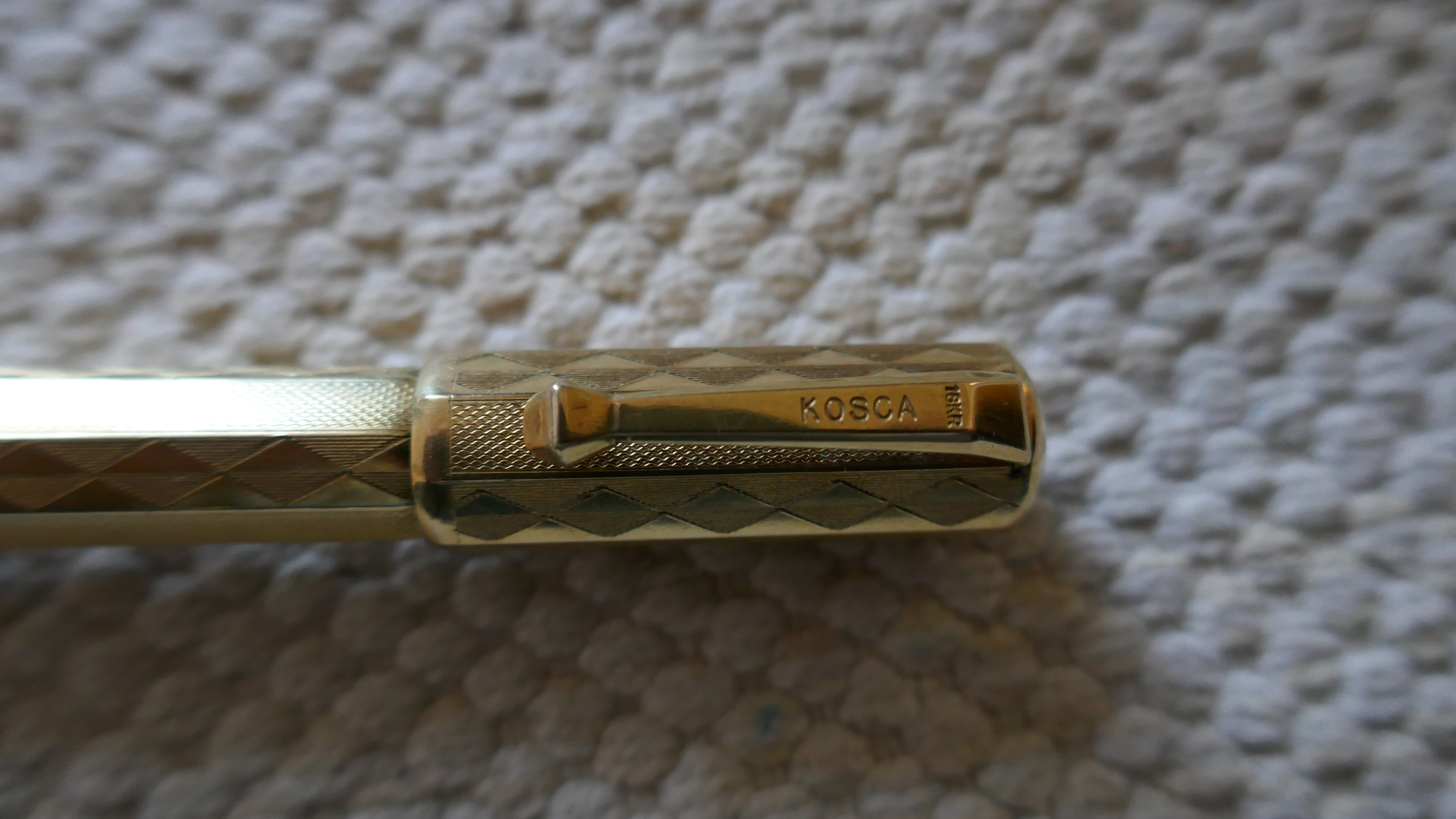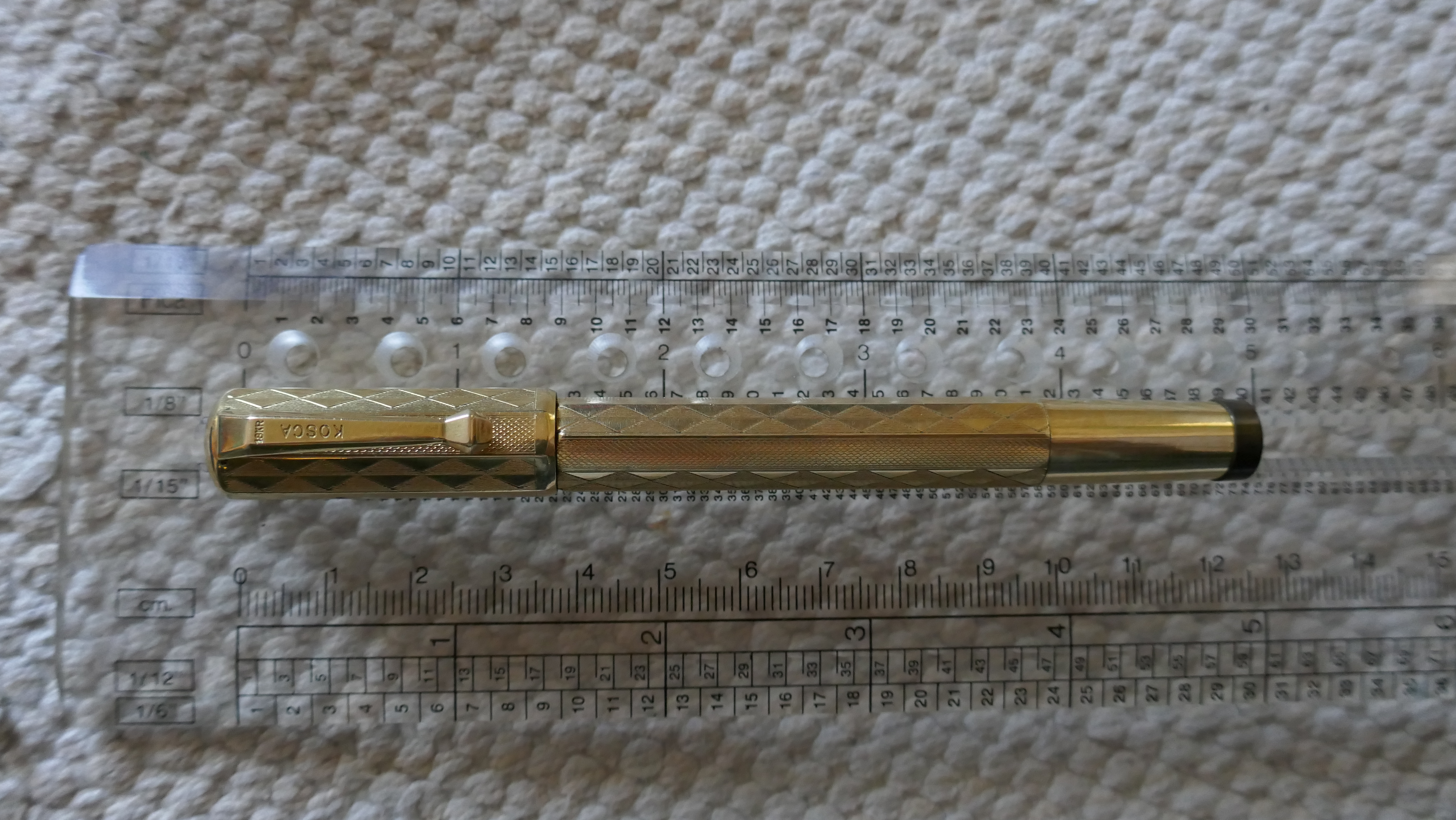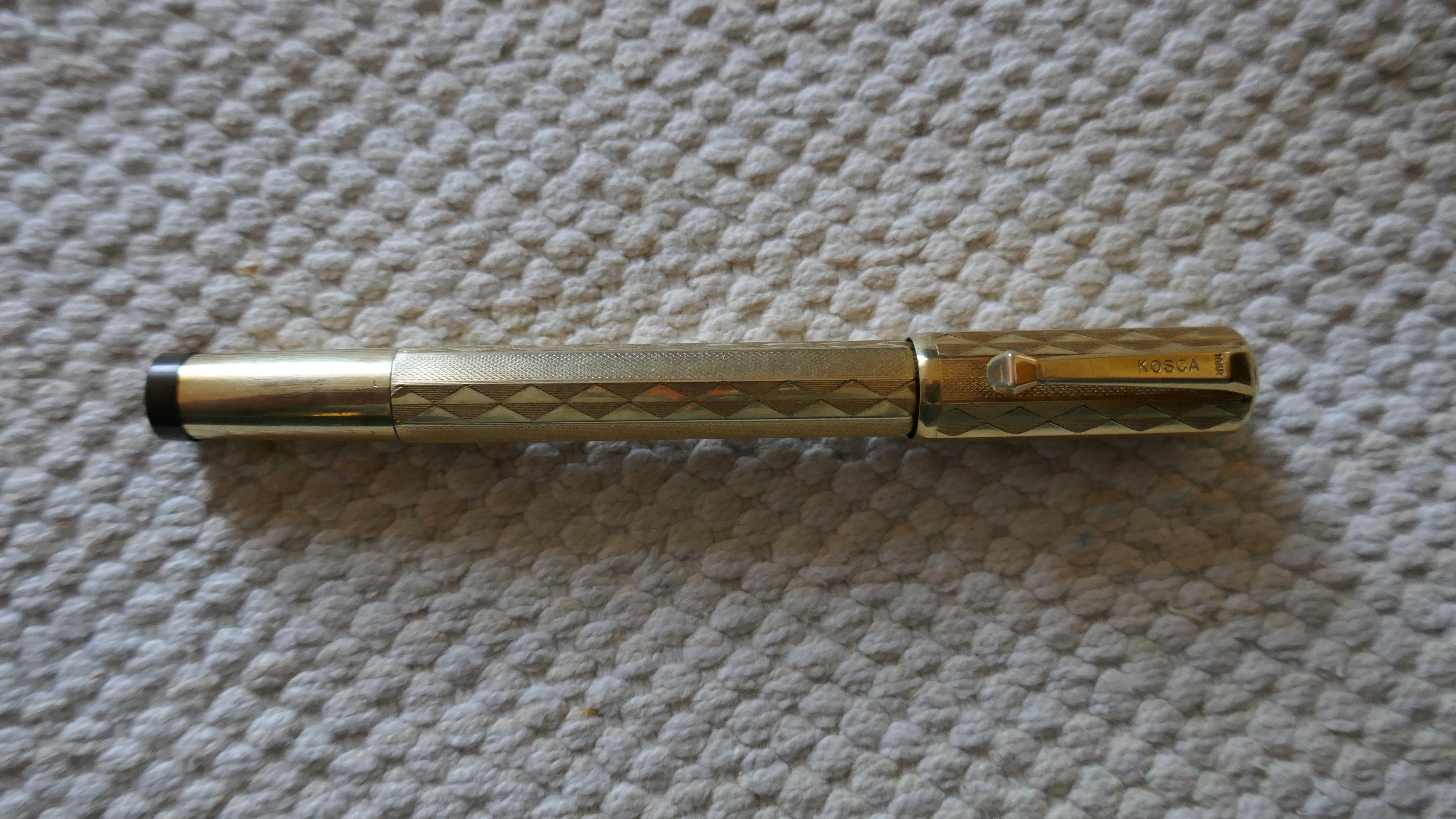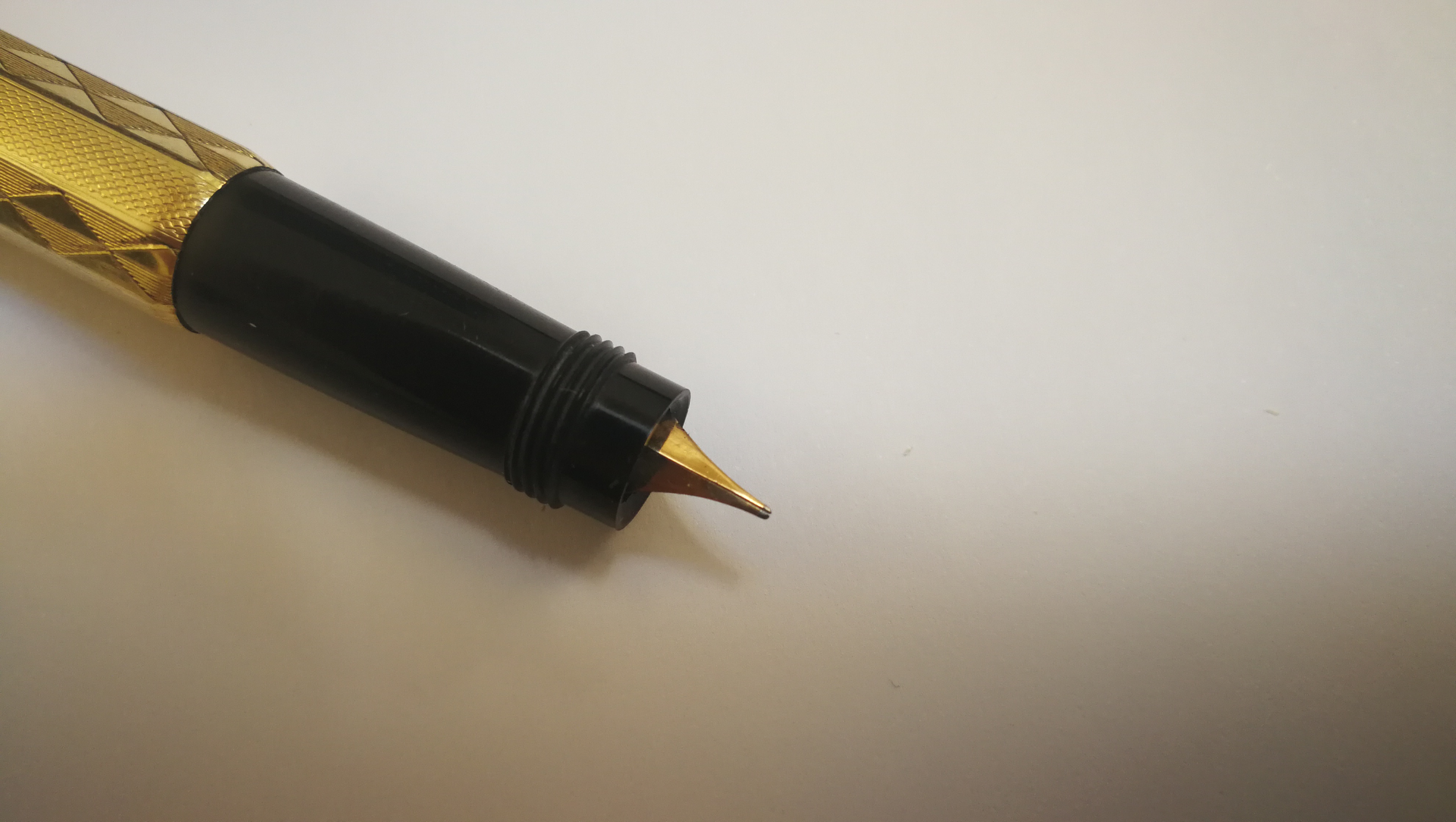 ovvero, sulla "camicia" (tutta la parte metallica che ricopre la penna che, originariamente, era solo in ebanite), in ottone, è steso un sottilissimo (millesimi di millimetro) foglio di oro a 18K