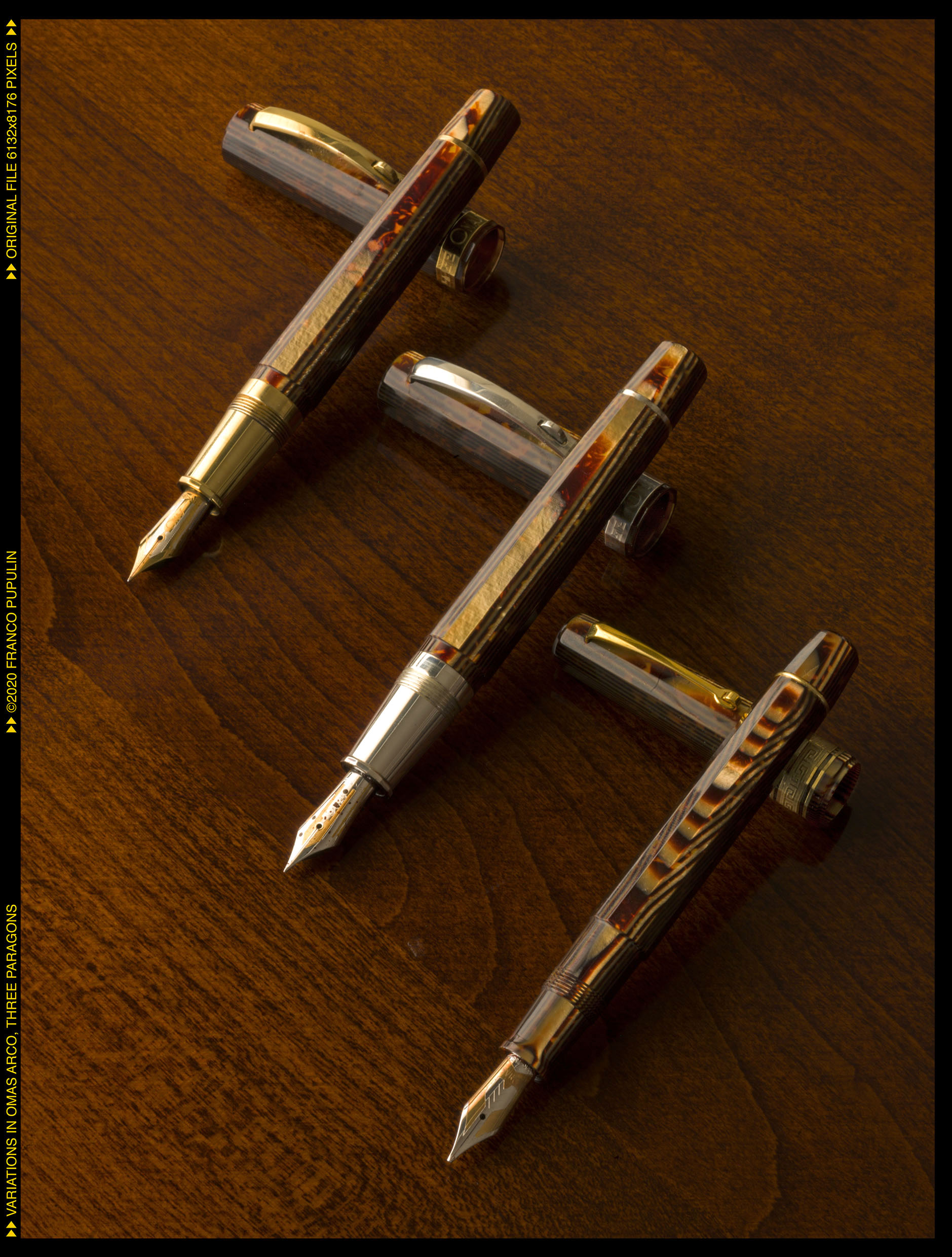 So che vi mostro delle fotografie da privilegiato. Per colpa della Omas che non c'é piú la celluloide Arco é diventata rarissima e costosissima. Ma ha unicolore e una profonditá unici. Suppongo che vari amici qui su questo forum che condividono con me il privilegio di possedere una penna in celluloide Arco siano d'accordo...
