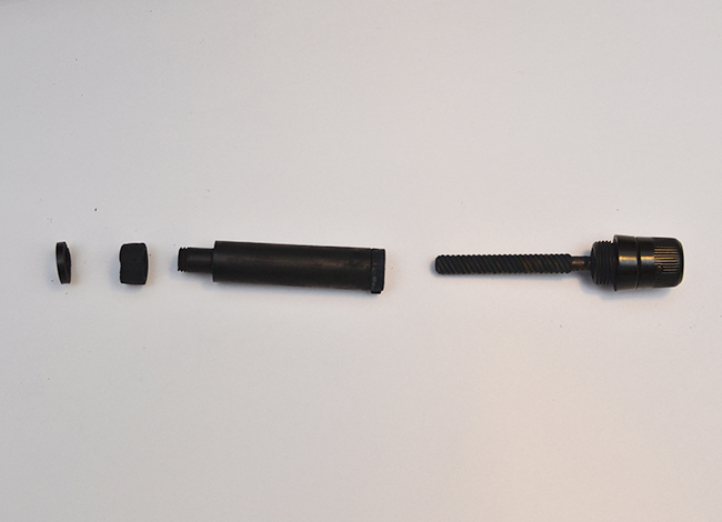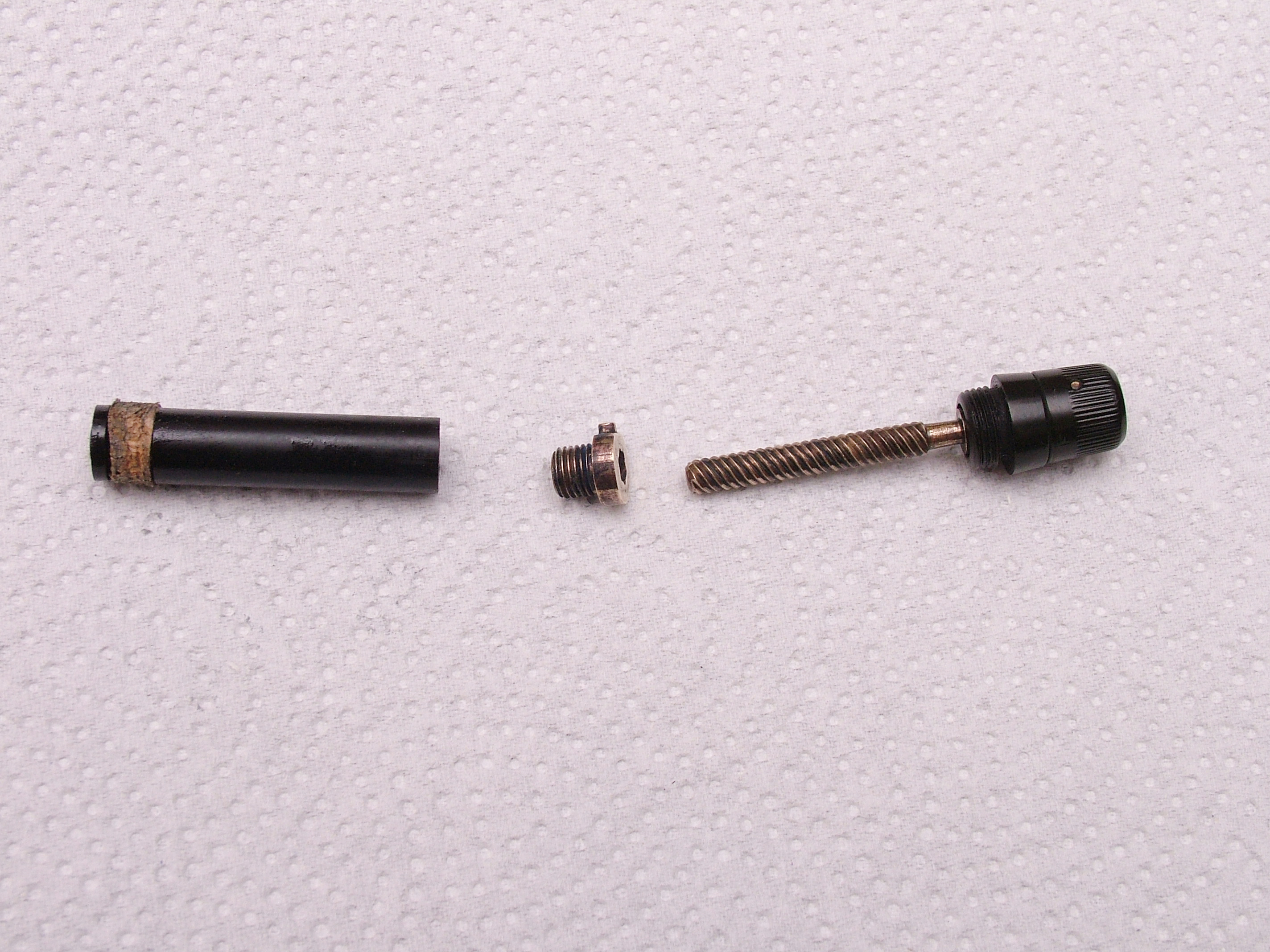 La parte in cui entra la vite e porta il nottolino che va nella scanalatura del fusto è un pezzo in ottone che va avvitata sul pistone.