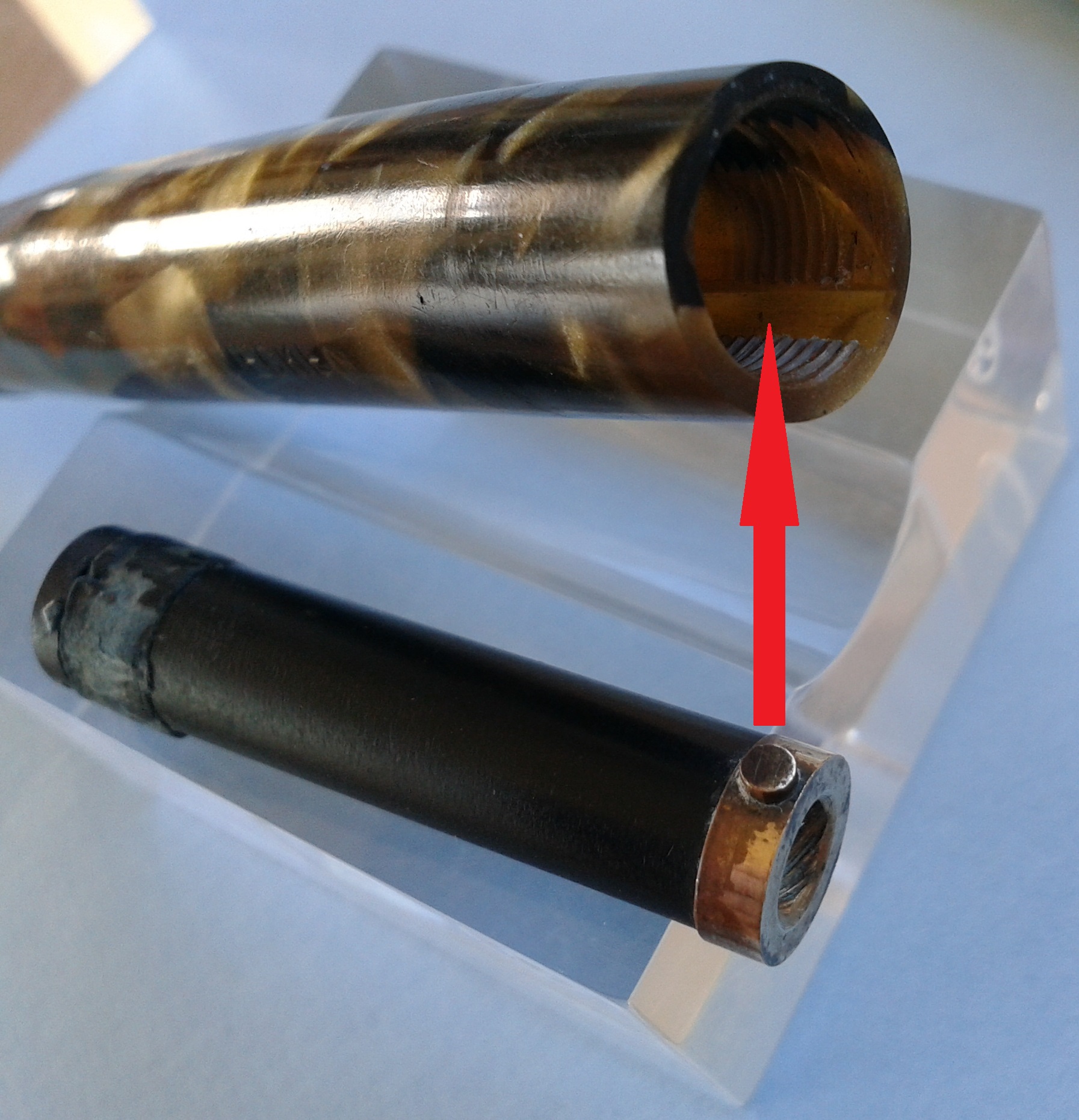 Credevo che la vite senza fine ed il pistone fossero completamente in ebanite, ho avuto una piacevole sorpresa, Il pistone è composto da un cilindro, da un lato su cui va il sughero e dall' altro si avvita la vite senza fine.