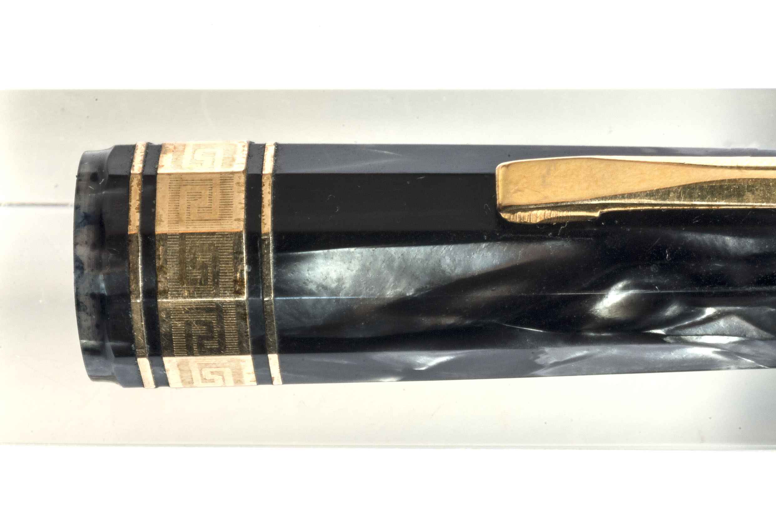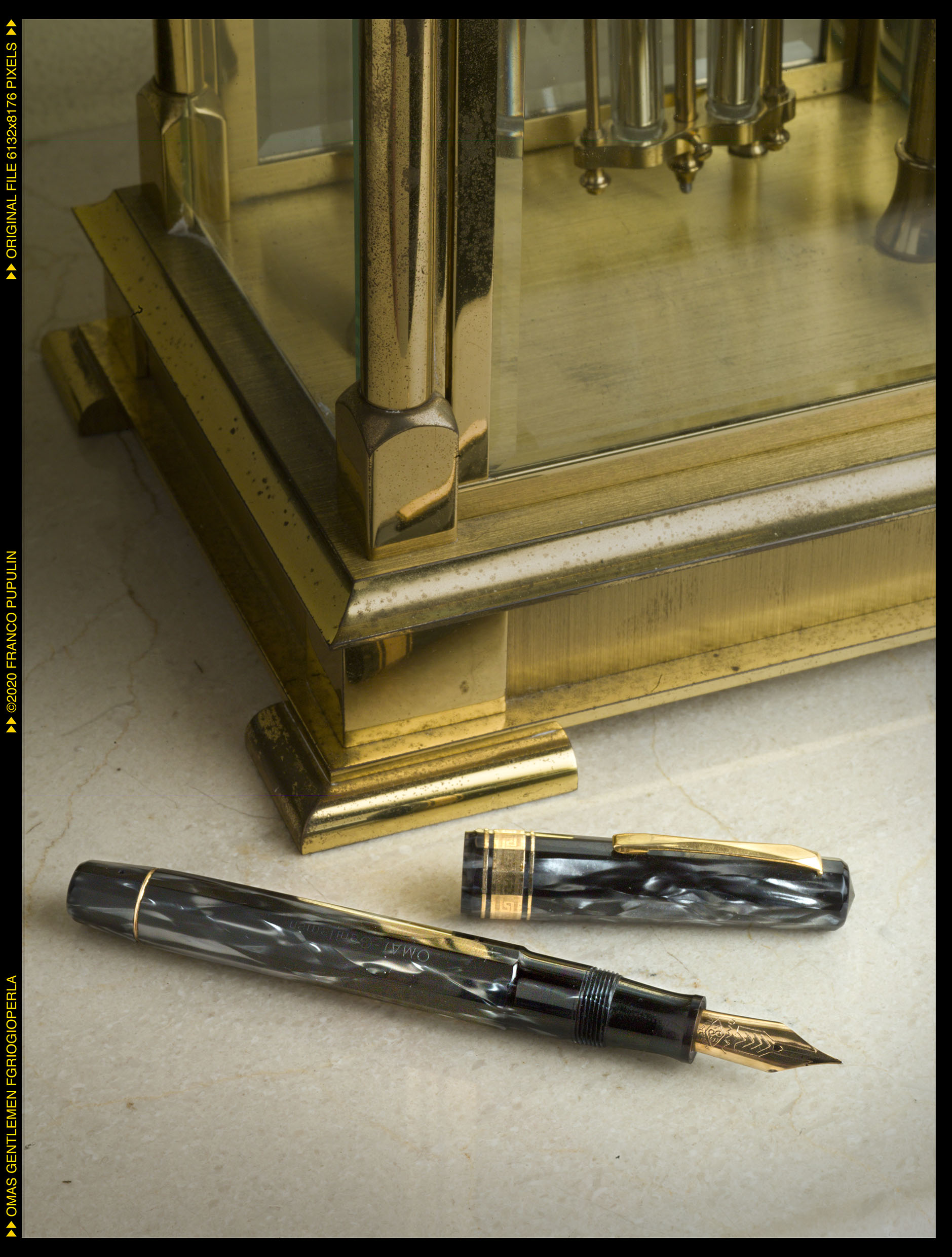 Come ho scritto più sopra, è una celluloide completamente diversa da quella che tradizionalmente OMAS chiama grigio perla, più scura, meno variegata e, in qualche modo, più marmorizzata. Ricordo che mi piacque moltissimo, ma a volte mi chiedo se non abbia sognato...