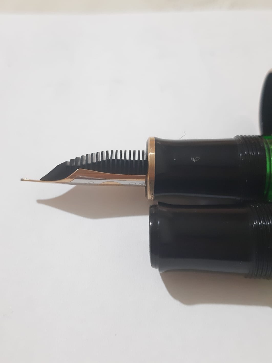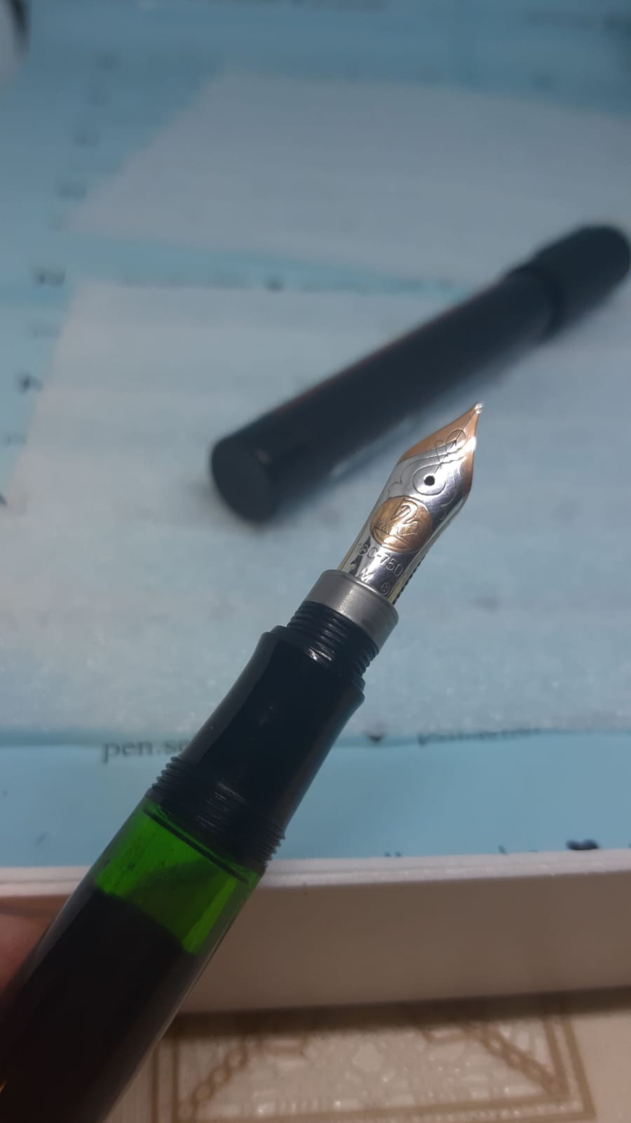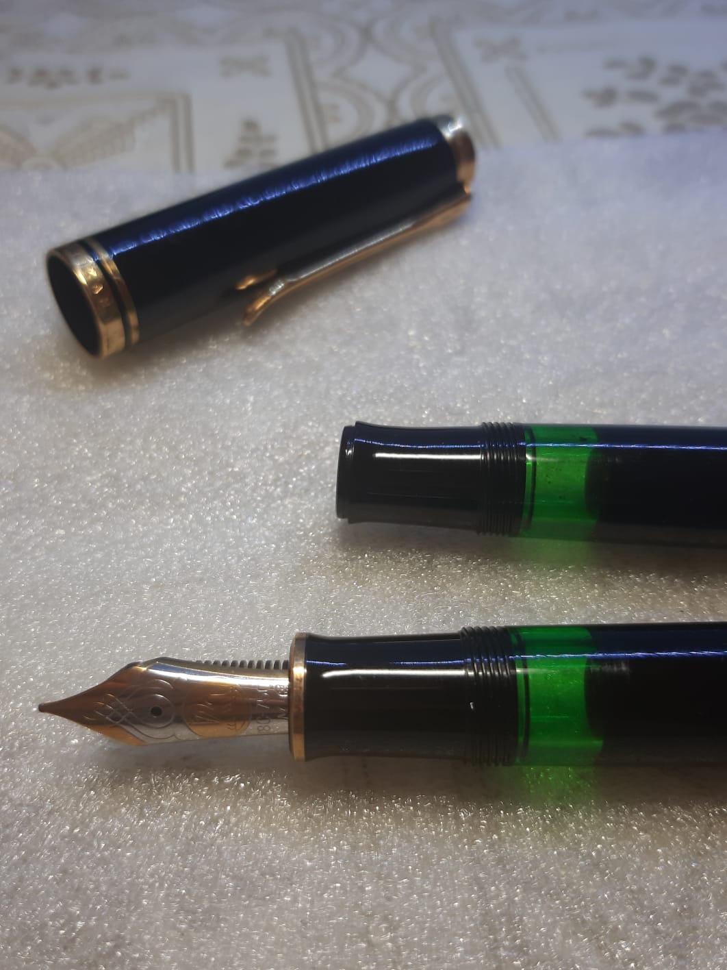 Scrivo questo post per chiedere lumi sul corpo di una M800 che sto cercando da un po' perchè mi avanza un pennino. Ne avrei trovato uno ma il venditore mi dice che, siccome manca la rondellina dorata, non si riesce ad avvitare il pennino. A questo punto chiedo delle foto perchè, da che mi risulti, la rondellina è solo decorativa e non ha nulla a che vedere con l'avvitamento del pennino (corregetemi se mi sbaglio.) Vi allego le foto che mi sono state fornite. Io sono molto scettica ma evito di dire cosa penso perchè con le penne ci so solo scrivere e non so fare altro, quindi lascio la parola agli esperti! Secondo voi quale problema potrebbe impedire al pennino di avvitarsi?