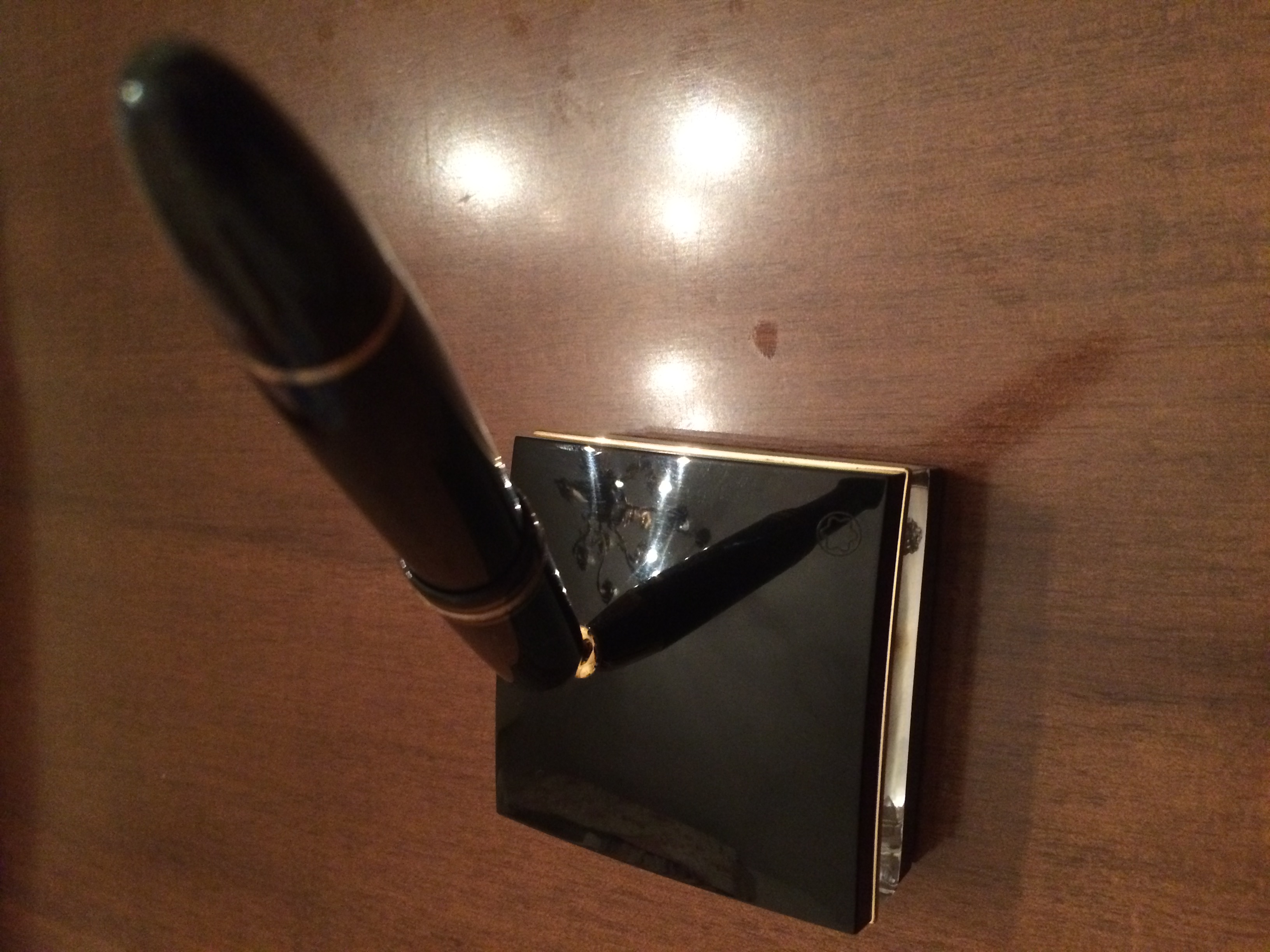 A seconda dei periodi di produzione di penne e stilofori, in alcune delle accoppiate la penna non può essere avvitata sul portapenna perché le filettature non coincidono. I miei due stilofori per la 149 hanno filettature diverse e si adattano, se si vuole avvitarle, a penne di epoche distinte. So che negli ultimi tempi di produzione di questo modello di stiloforo (che io trovo semplicemente bellissimo) Montblanc rinunciò a filettare il tappo dello stiloforo, in modo che andasse bene con qualsiasi modello di penna.