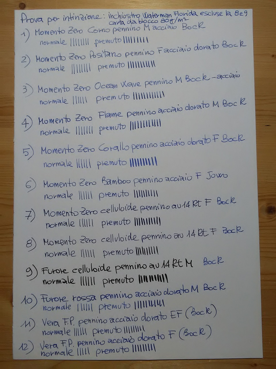 Per la cronaca l'inchiostro è un Waterman Florida escluso la 8) che non mi ricordo e la 9) che è il nero della Visconti. La carta è di buona qualità da 100 g e non 80 come scritto nella prova.