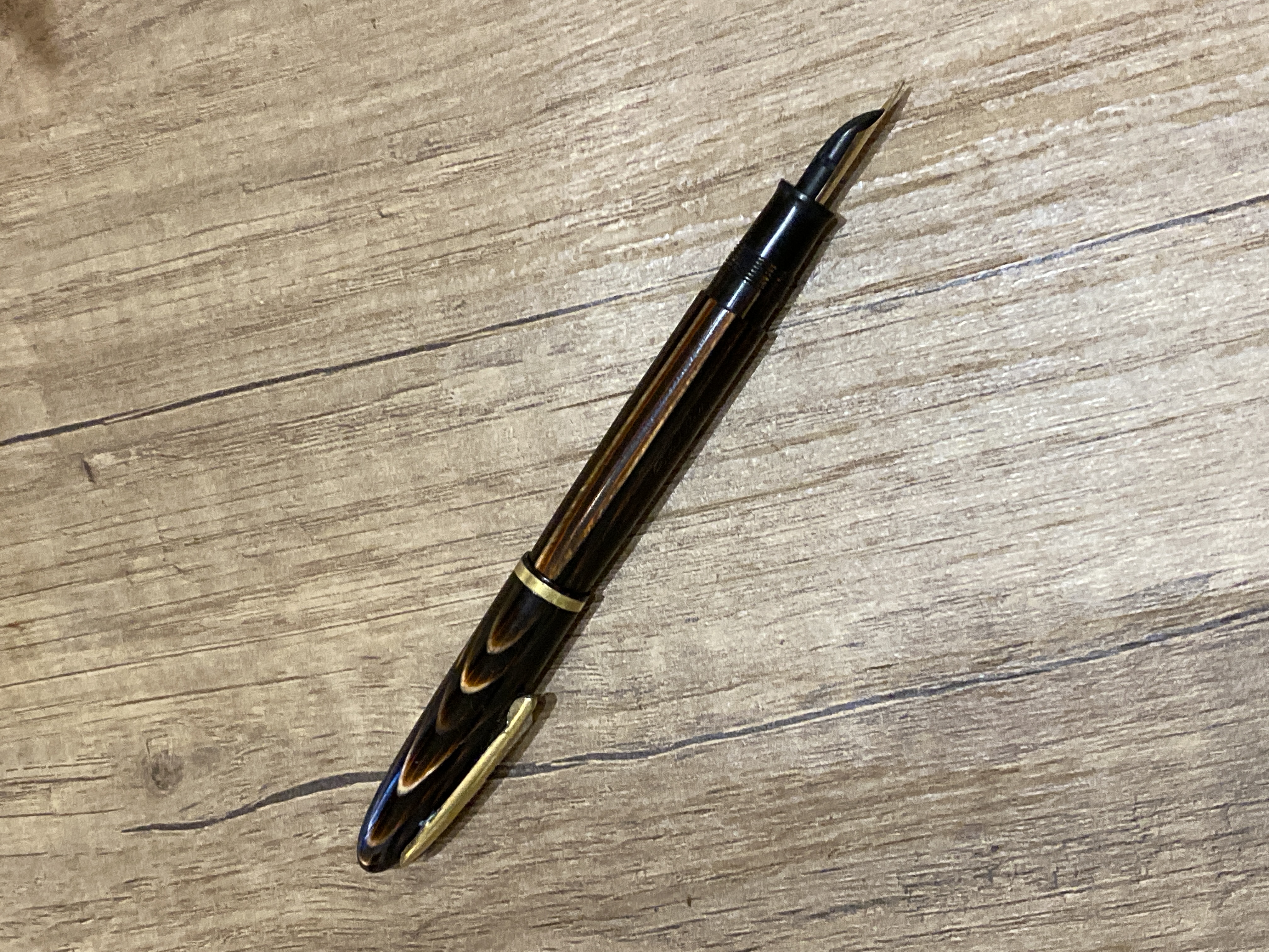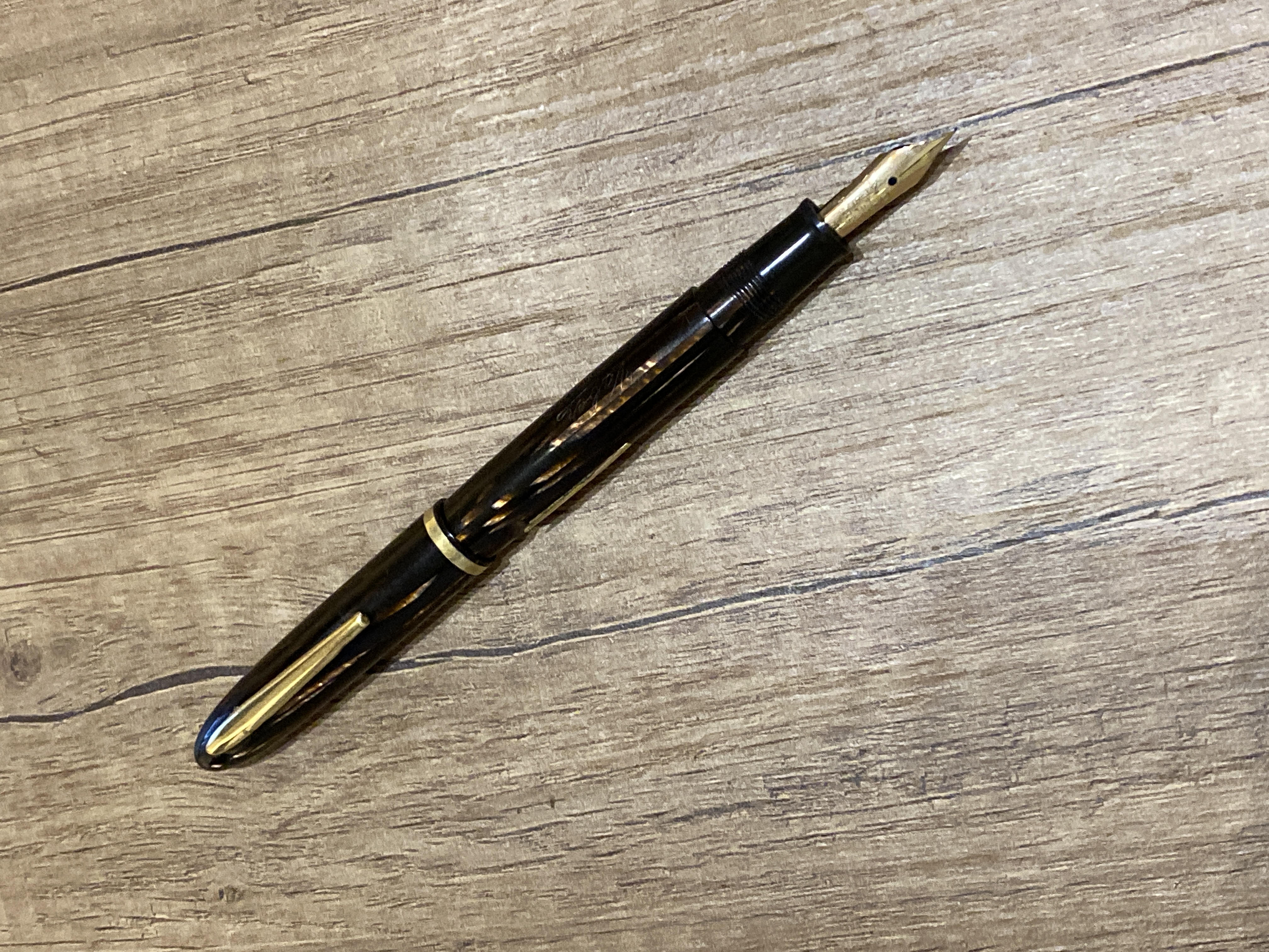 La penna aveva un pennino anonimo in acciaio semidistrutto, l’ho sostituito con questo Union in oro 14K.
