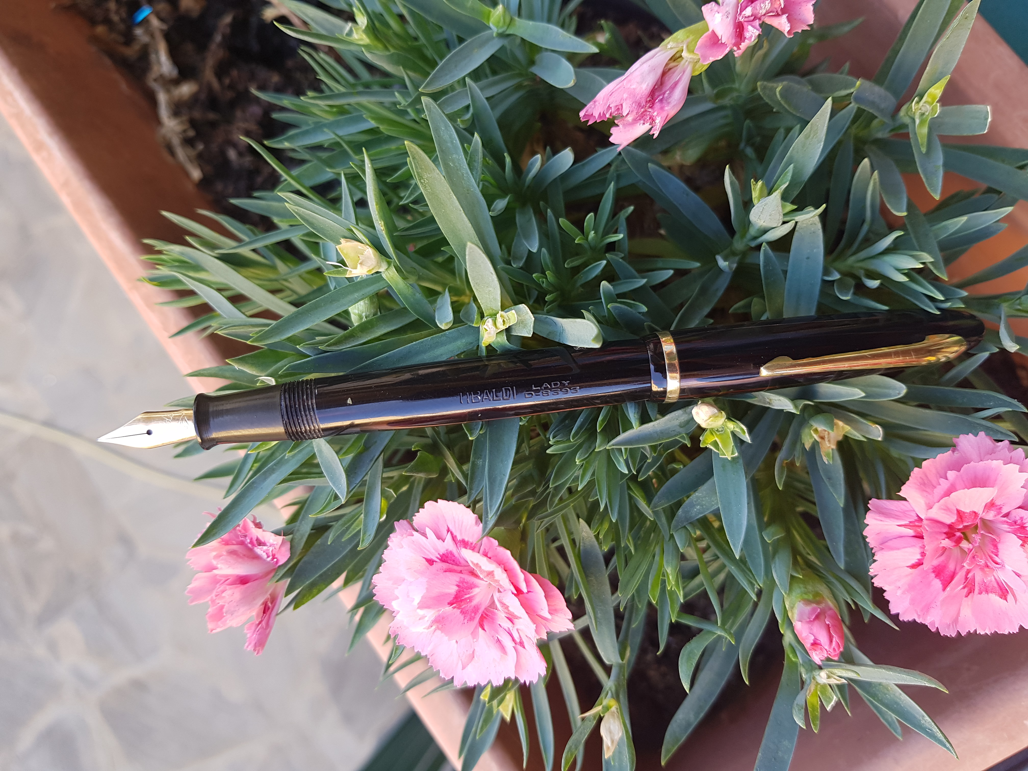 Non so fotografare, ma ho tra le mani una Tibaldi ("LADY D-8393" sul fusto) a pistone che pare la sorella gemella.