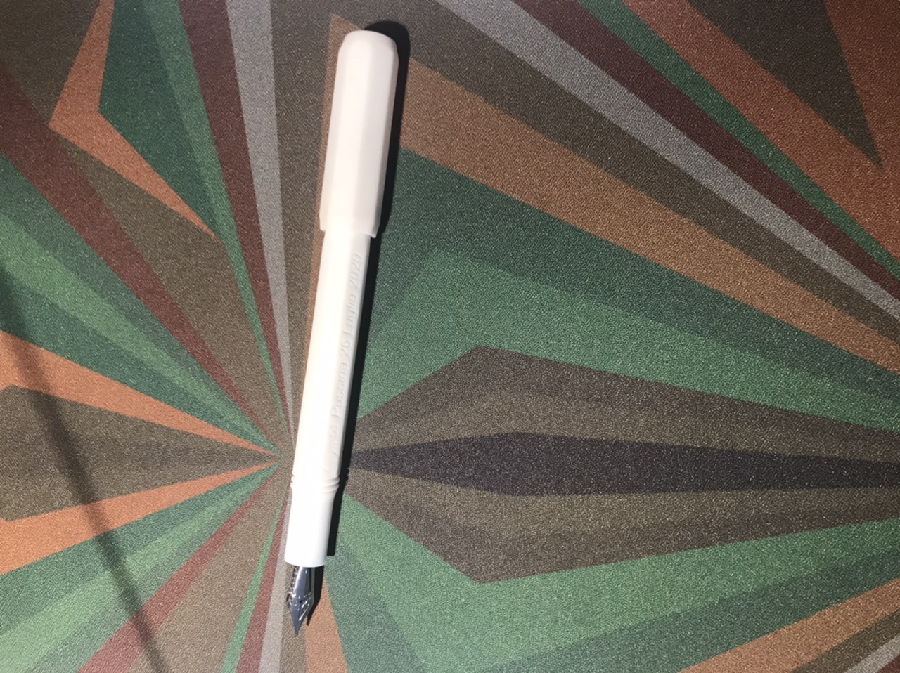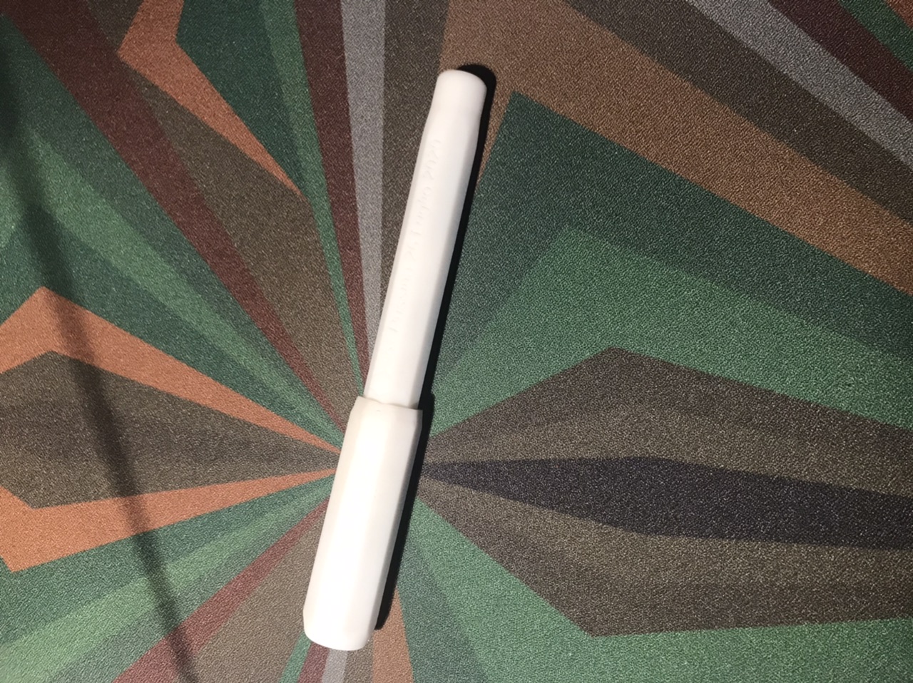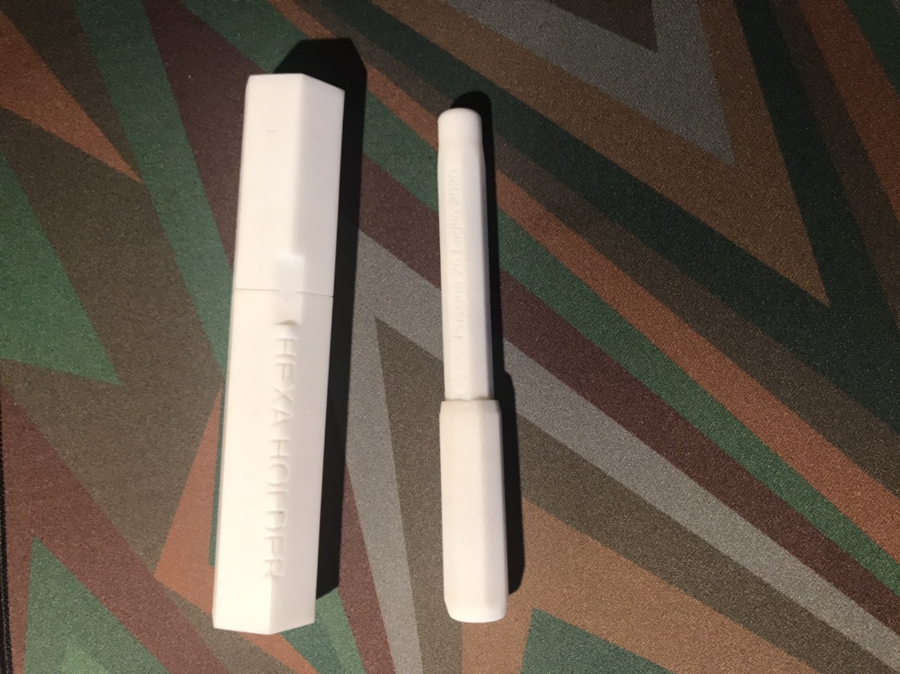 La penna è arrivata in una custodia esagonale dello stesso materiale, ancora da perfezionare nei sui particolari, ma molto simpatica come idea.