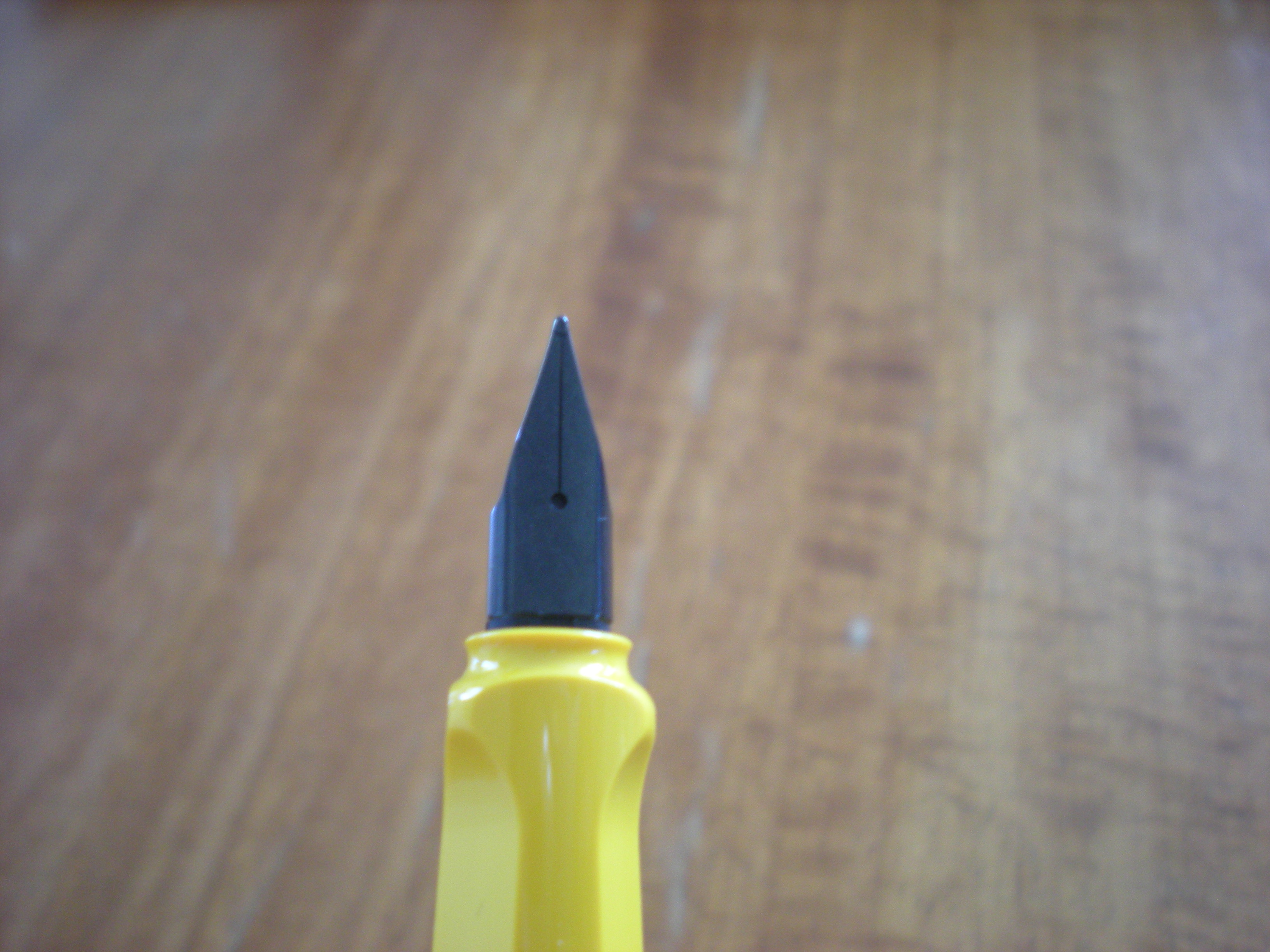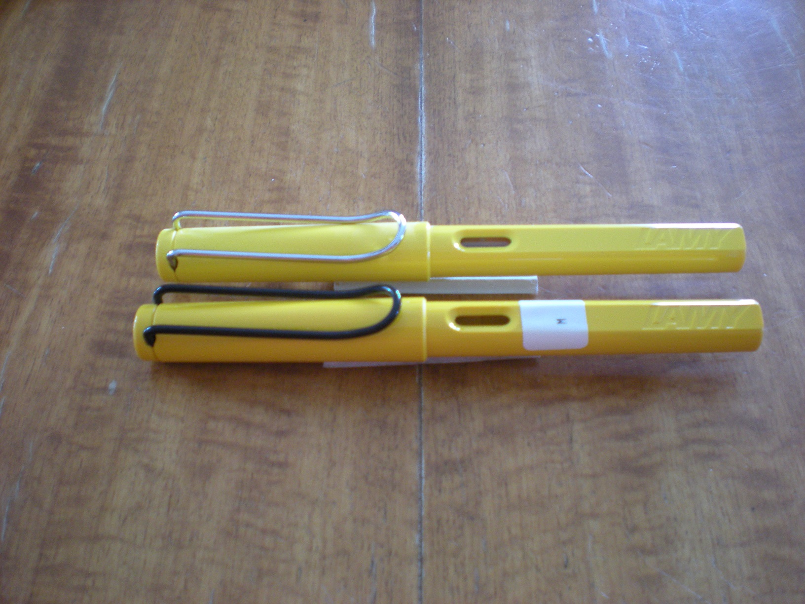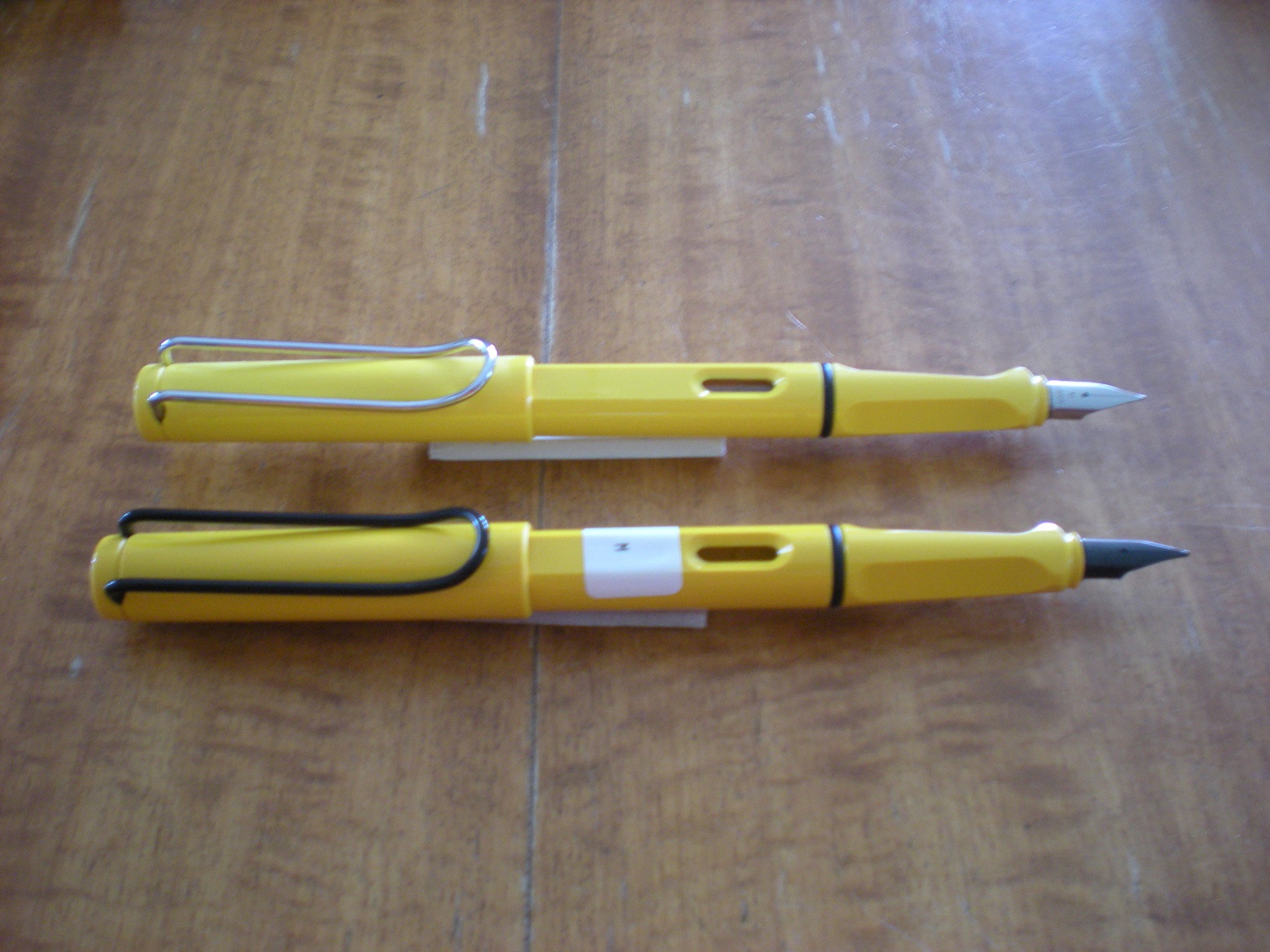 Ieri pomeriggio mi ero recato per lavoro nella Città Ducale di Cividale del Friuli, sede del primo Ducato Longobardo in Italia nel 569 con Alboino, e al temine dei sopraluoghi per l'allestimento di alcuni concerti sono passato davanti alle vetrine di una cartolibreria, conosciuta da tempo, molto fornita di penne stilografiche. L'occhio "clinico" ha intravisto in quella dedicata agli oggetti scolastici questa Lamy prima serie e senza indugiare sono entrato e poi uscito con la penna in saccoccia. Rispetto alla serie attuale il colore giallo è più intenso e la clip è di colore nero come il pennino.