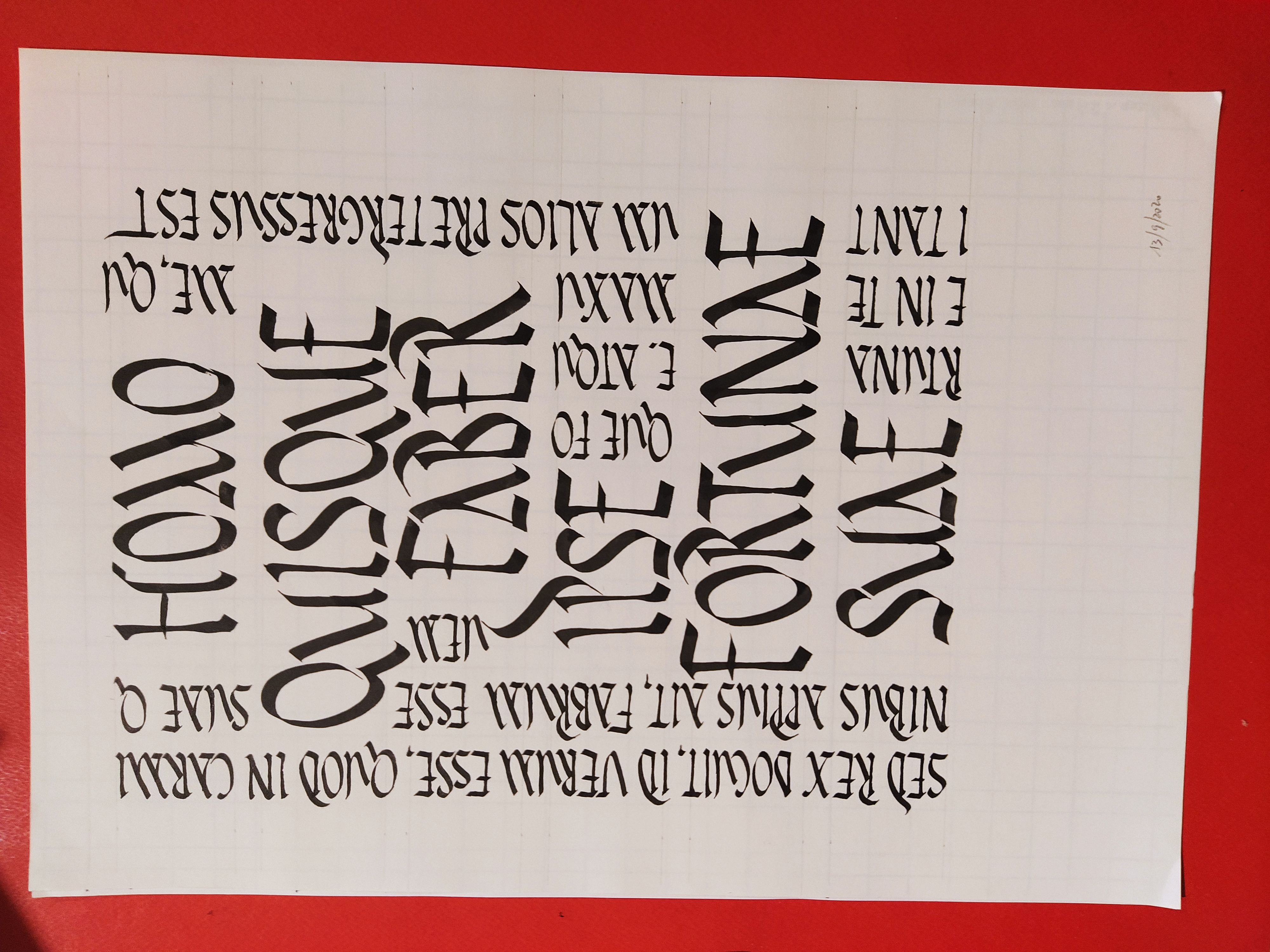 fufluns ha scritto: martedì 15 settembre 2020, 21:45 Dory, calli1958: ....Ho sempre considerato la Rustica una grafia difficilissima, perché da quanto capisco richiede una continua e controllata rotazione del pennino...